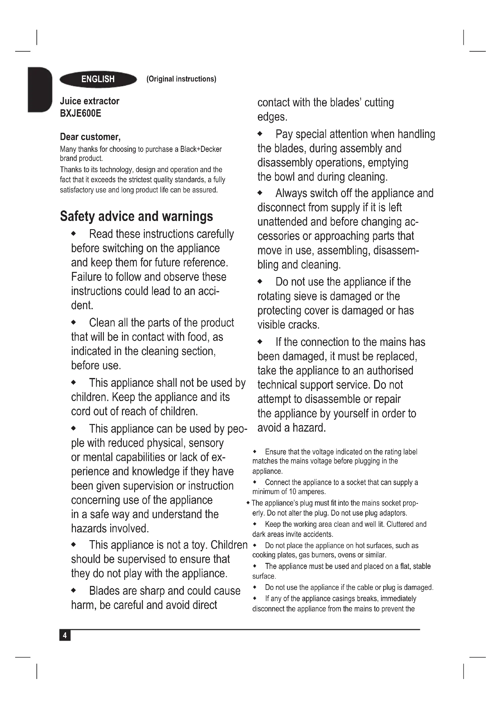 USER MANUAL BXJE600E BLACK & DECKER