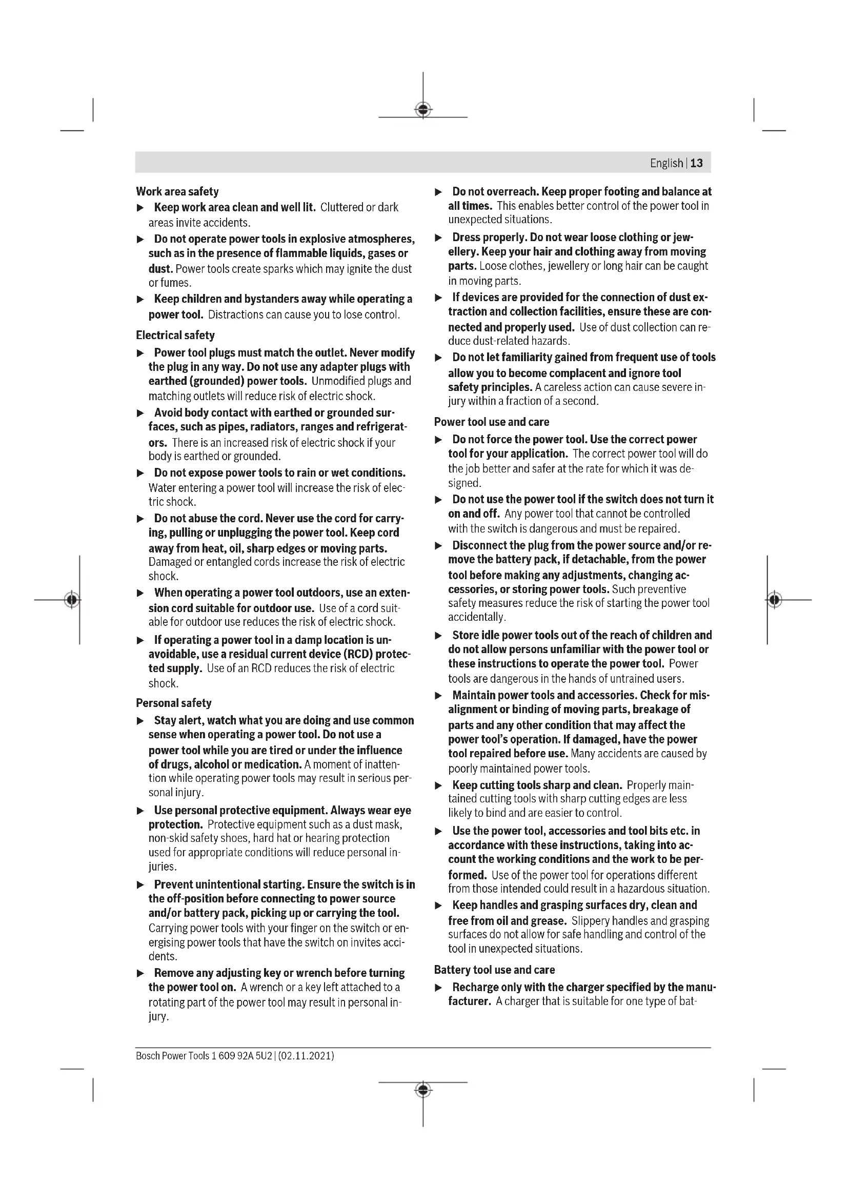 - Robert Bosch Power Tools GmbH (PT/ECS) 70538 Stuttgart GERMANY Henk Becker Chairman of Executive Management Helmut Heinzelmann Head of Product Certification Robert Bosch Power Tools GmbH, 70538 Stuttgart, GERMANY Stuttgart, 30.06.2020 Bosch Power Tools 1 609 92A 5U2 | (02.11.2021)IV 1 609 92A 5U2 | (02.11.2021) Bosch Power Toolsi Declaration of Conformity Cordless drill/driver Article number GSR 18 V-EC GSB 18 V-EC 3 601 JE8 100 3 601 JE9 100 We declare under our sole responsibility that the stated products comply with all applicable provisions of the regulations lis- ted below and are in conformity with the following standards. Technical file at: Robert Bosch Ltd. (PT/SOP-GB), Broadwater Park, North Orbital Road, Uxbridge UB9 5HJ, United Kingdom The Supply of Machinery (Safety) Regulations 2008 The Electromagnetic Compatibility Regulations 2016 The Restriction of the Use of Certain Hazardous Substances in Electrical and Electronic Equipment Regulations 2012 EN 62841-1:2015 EN 62841-2-1:2018+A11:2019 EN 55014-1:2017+A11:2020 EN 55014-2:2015 EN IEC 63000:2018 Robert Bosch Power Tools GmbH, 70538 Stuttgart, Germany represented (in terms of the above regulations) by Robert Bosch Limited, Broadwater Park, North Orbital Road, Uxbridge UB9 5HJ, United Kingdom Vonjy Rajakoba Managing Director - Bosch UK Martin Sibley Head of Sales Operations and Aftersales Robert Bosch Ltd. Broadwater Park, North Orbital Road, Uxbridge UB9 5HJ, United Kingdom, as authorised representative acting on behalf of Robert Bosch Power Tools GmbH, 70538 Stuttgart, Germany Place of issue: Uxbridge Date of issue: 14/04/2021 Bosch Power Tools 1 609 92A 5U2 | (02.11.2021)