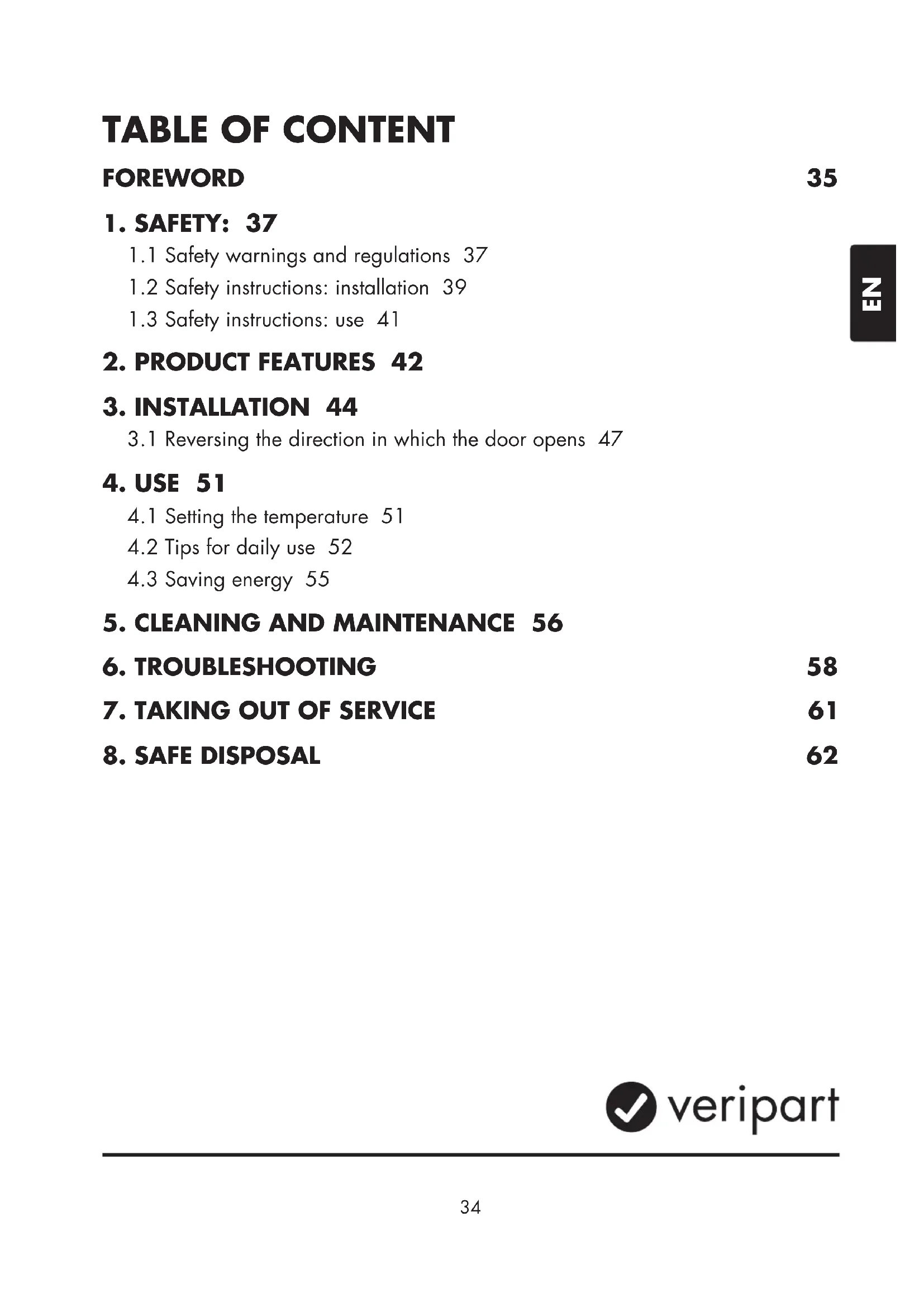 VPKV701 - Fridge Veripart - Free user manual and instructions