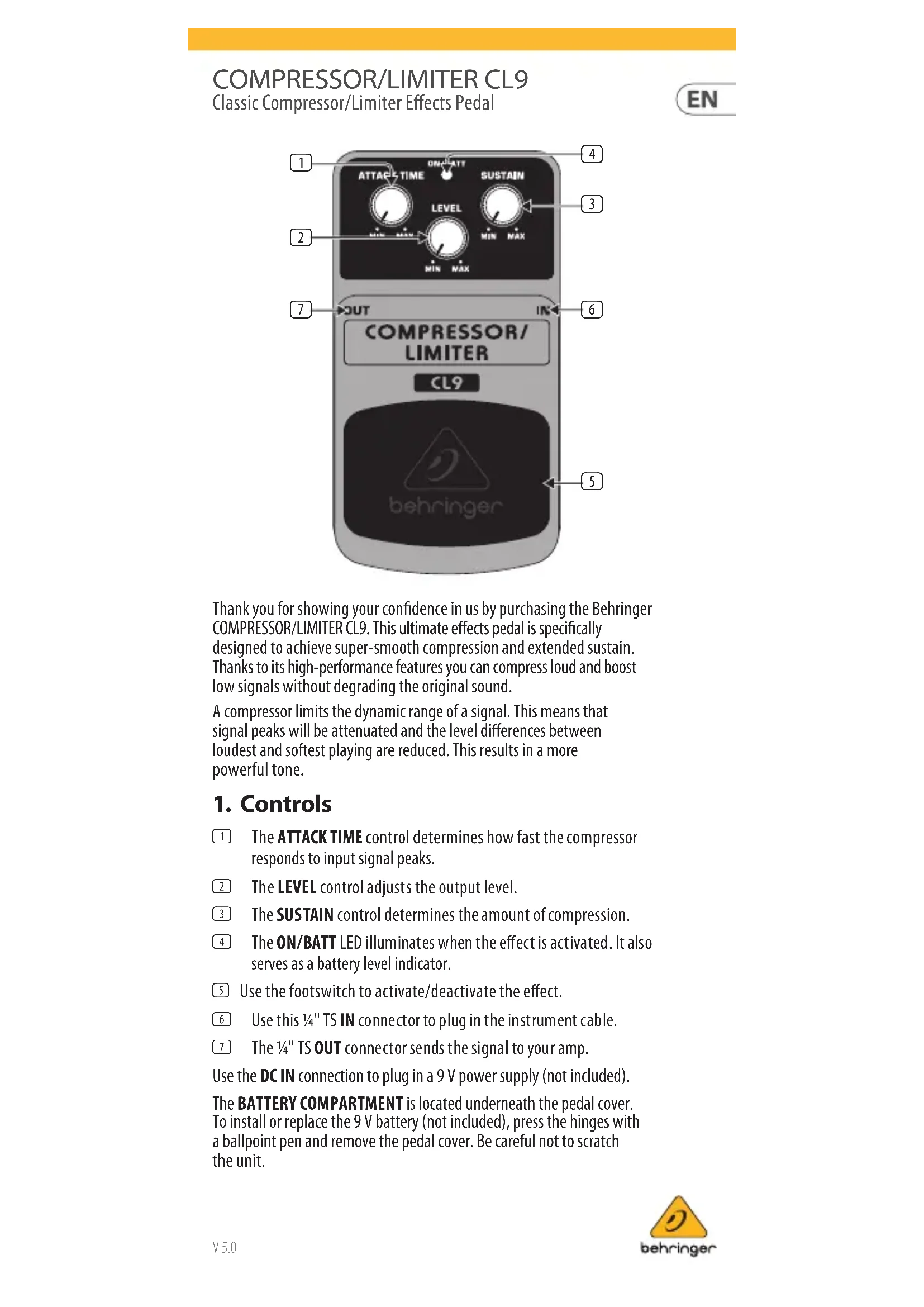 CL9 CompressorLimiter - Guitar BEHRINGER - Free user manual and instructions