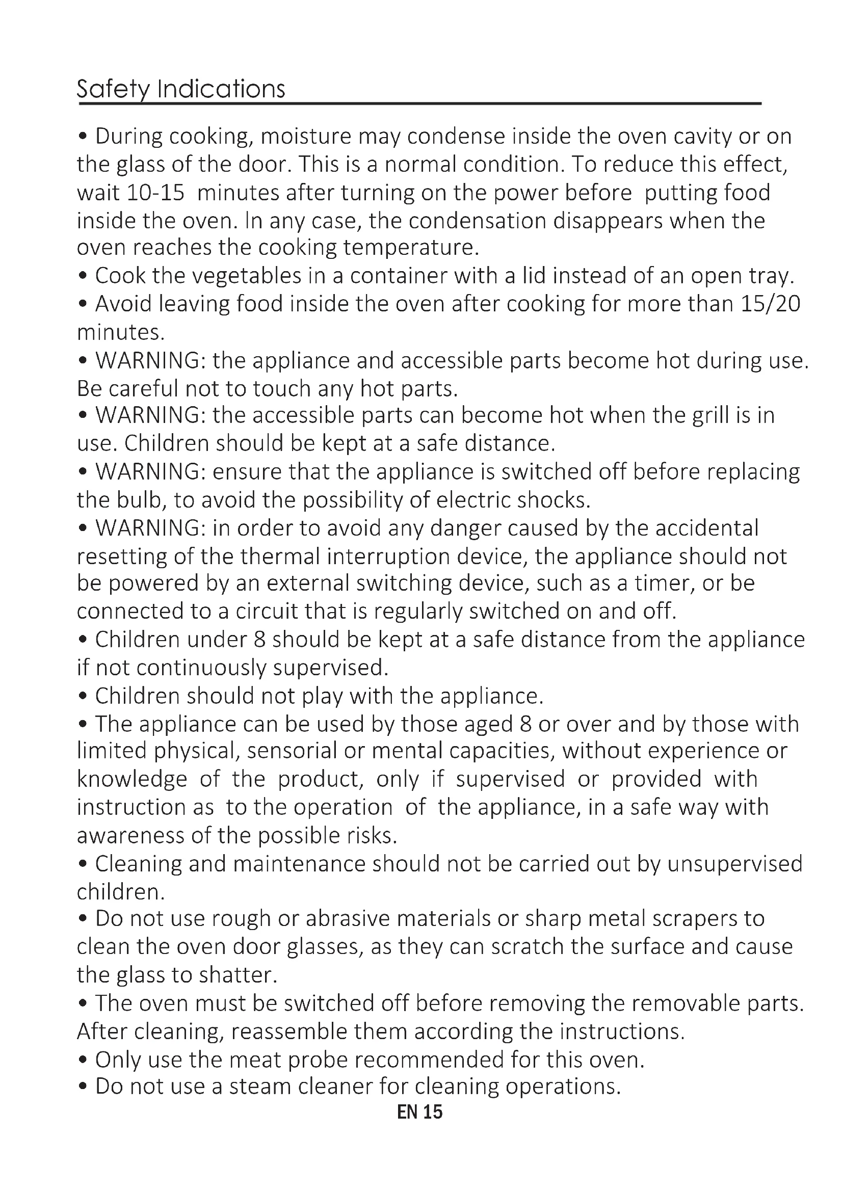 - Avoid leaving food inside the oven after cooking for more than 15/20 minutes.
