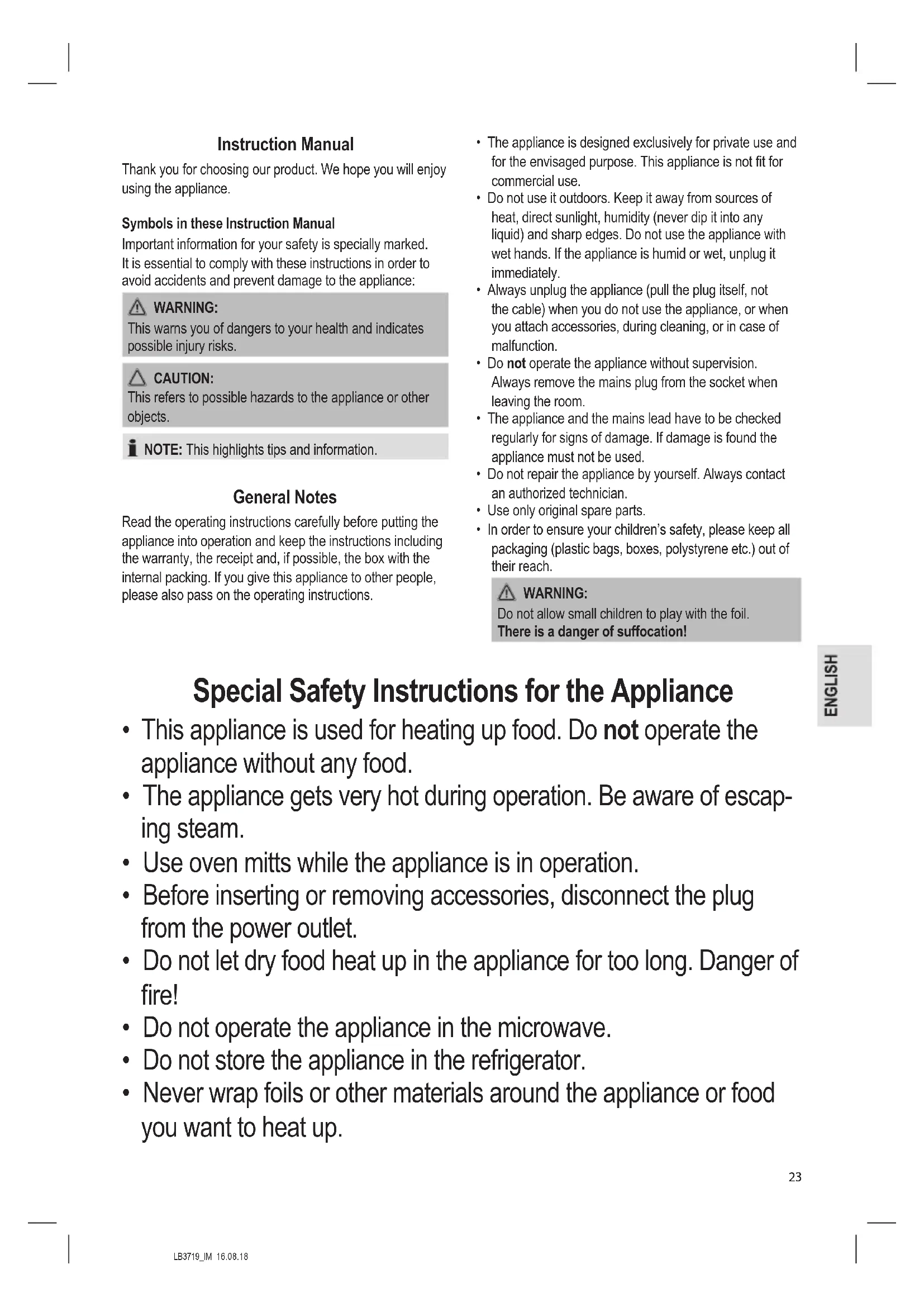 Download the instructions for your Other kitchen appliances in PDF format for free! Find your manual LB 3719 - CLATRONIC and take your electronic device back in hand. On this page are published all the documents necessary for the use of your device. LB 3719 by CLATRONIC.