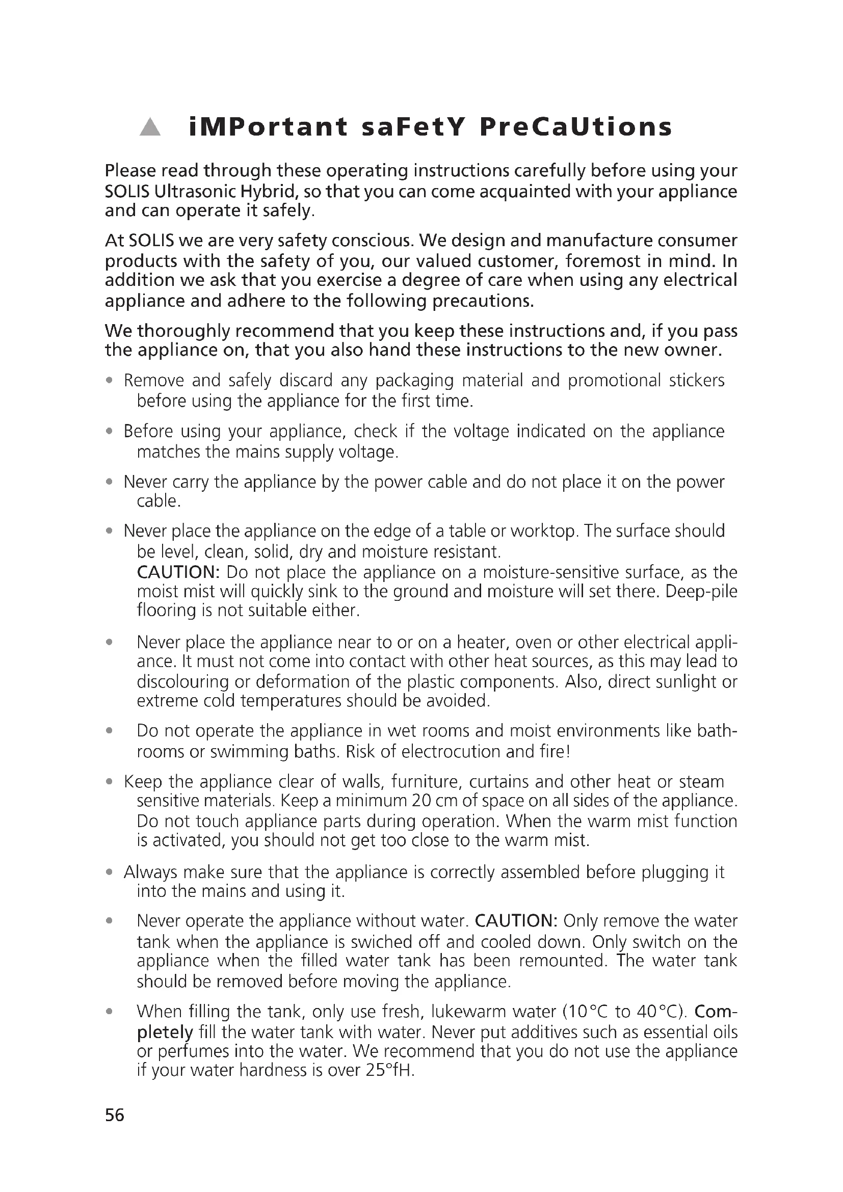 - Save these instructions.59 Functions and adVantages oF your solis ultrasonic hybrid humidiFier