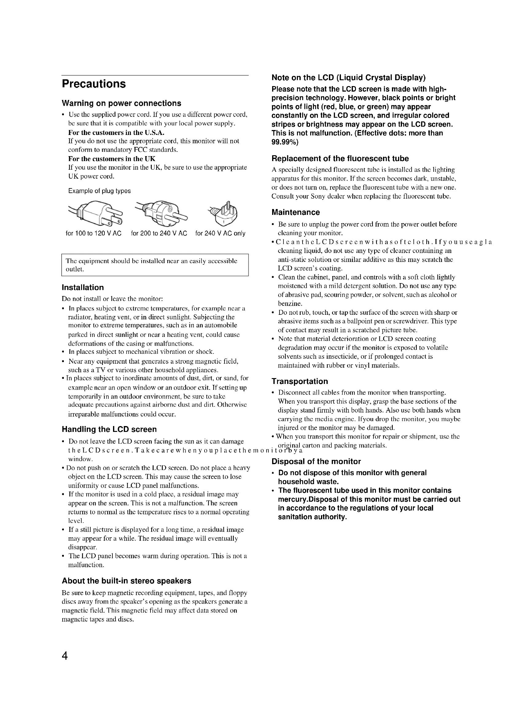 If you use the monitor in the UK, be sure to use the appropriate UK power cord.