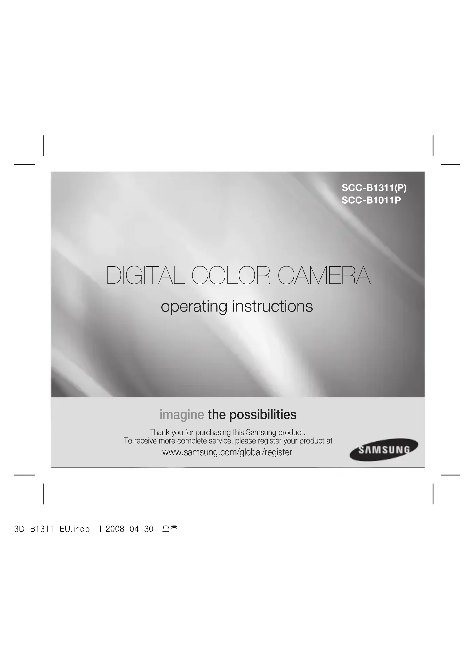 Correct Disposal of This Product (Waste Electrical & Electronic Equipment) (Applicable in the European Union and other European countries with separate collection systems) This marking shown on the product or its literature, indicates that it should not be disposed with other household wastes at the end of its working life. To prevent possible harm to the environment or human health from uncontrolled waste disposal, please separate this from other types of wastes and recycle it responsibly to promote the sustainable reuse of material resources. Household users should contact either the retailer where they purchased this product, or their local government ofce, for details of where and how they can take this item for environmentally safe recycling. Business users should contact their supplier and check the terms and conditions of the purchase contract. This product should not be mixed with other commercial wastes for disposal. 00753D-B1311-EU.indb 13 2008-04-30 오후 6:10:28Memo 00753D-B1311-EU.indb 14 2008-04-30 오후 6:10:28SCC-B1311(P) SCC-B1011P bedienungsanleitung DIGITALE FARBKAMERA Denken Sie an die Möglichkeiten Danke für den Kauf eines Samsung Gerätes.Um einen umfassenderen Kundendienst zu erhalten, registrieren Sie Ihr Gerät bitte unter www.samsung.com/global/register GER 00753D-B1311-EU.indb 1 2008-04-30 오후 6:10:30sicherheitsvorkehrungen WARNUNG
