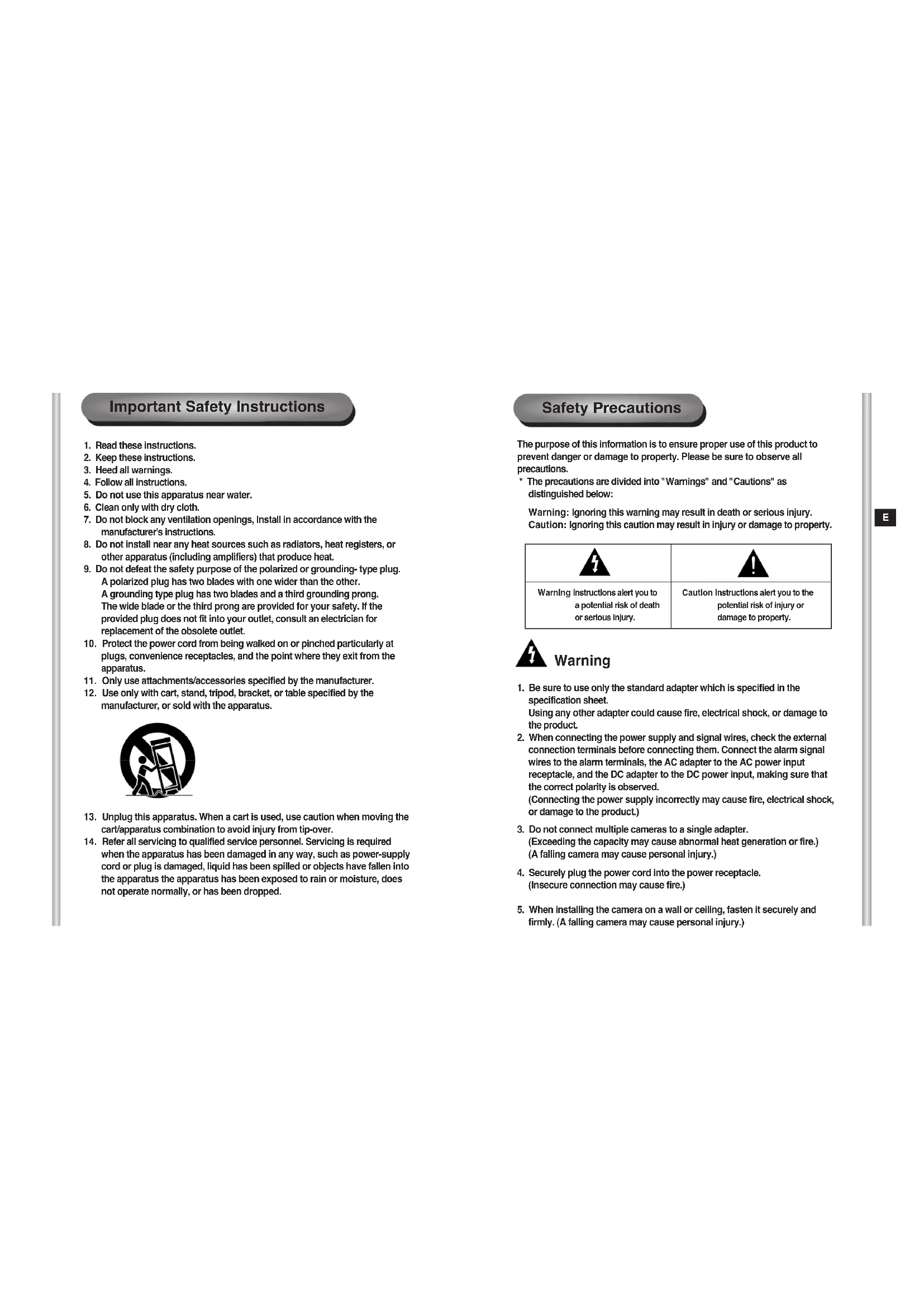 13. Unplug this apparatus. When a cart is used, use caution when moving the