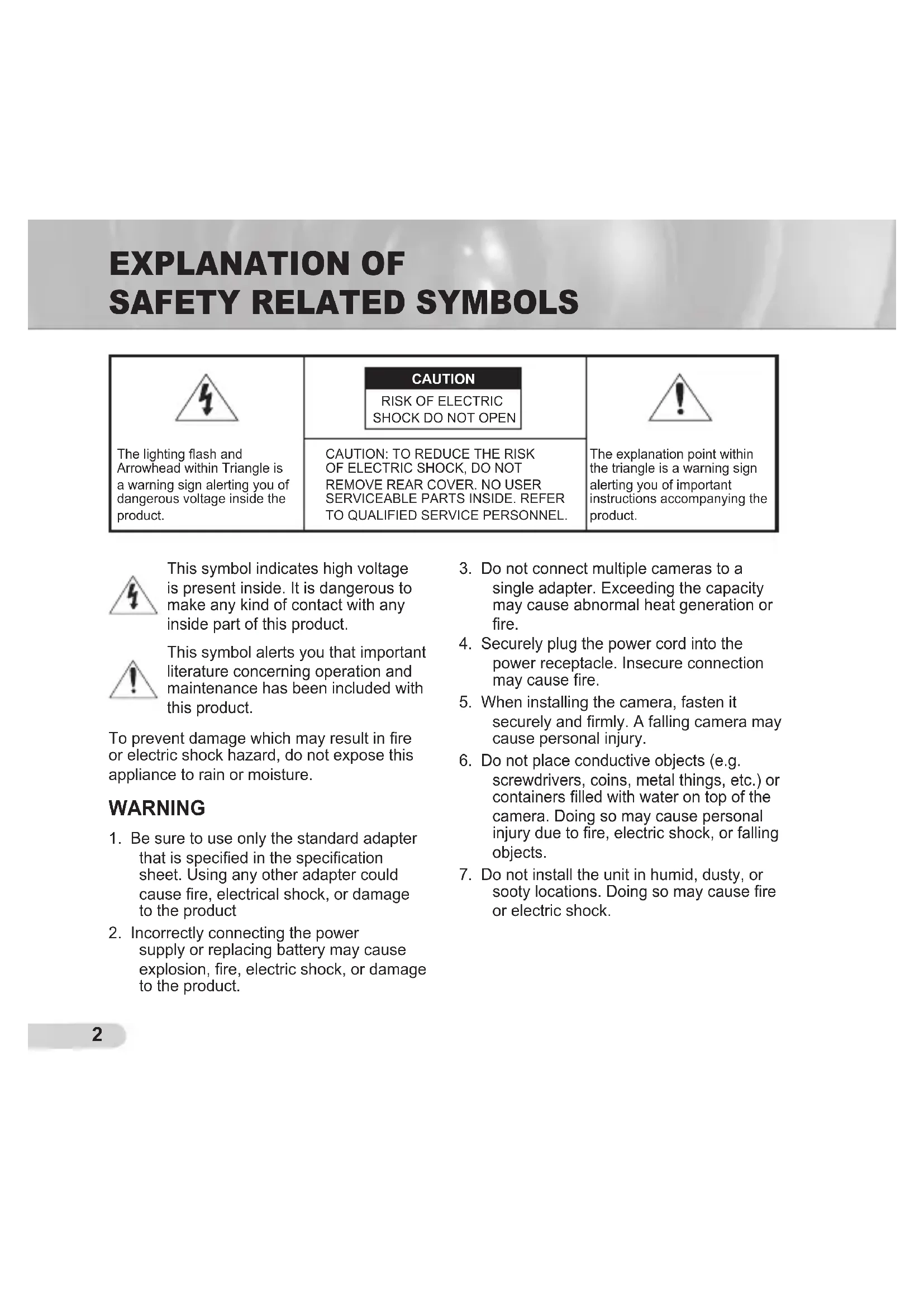 sooty locations. Doing so may cause fire or electric shock. EXPLANATION OF