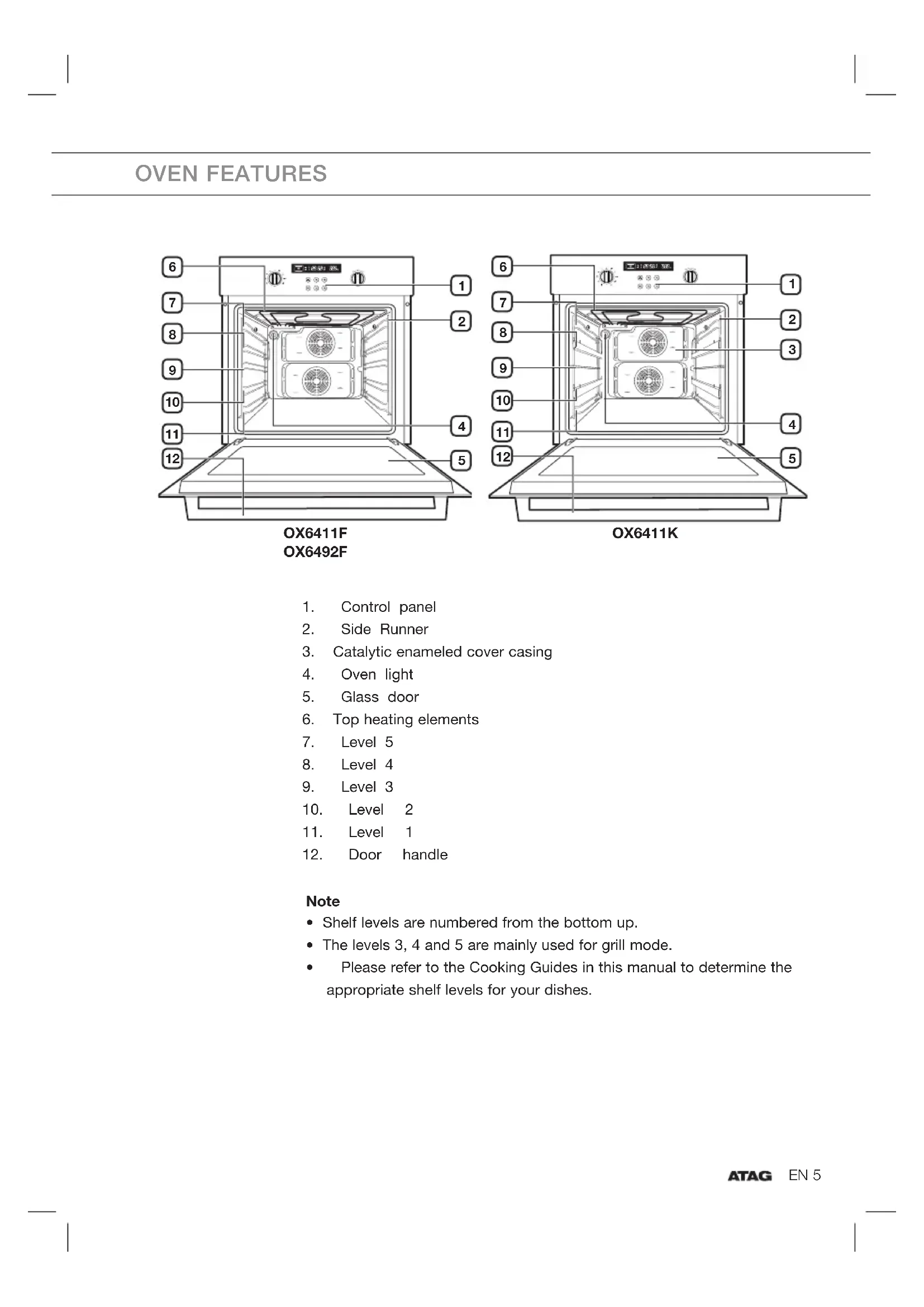 - Please refer to the Cooking Guides in this manual to determine the appropriate shelf levels for your dishes. OVEN FEATURES