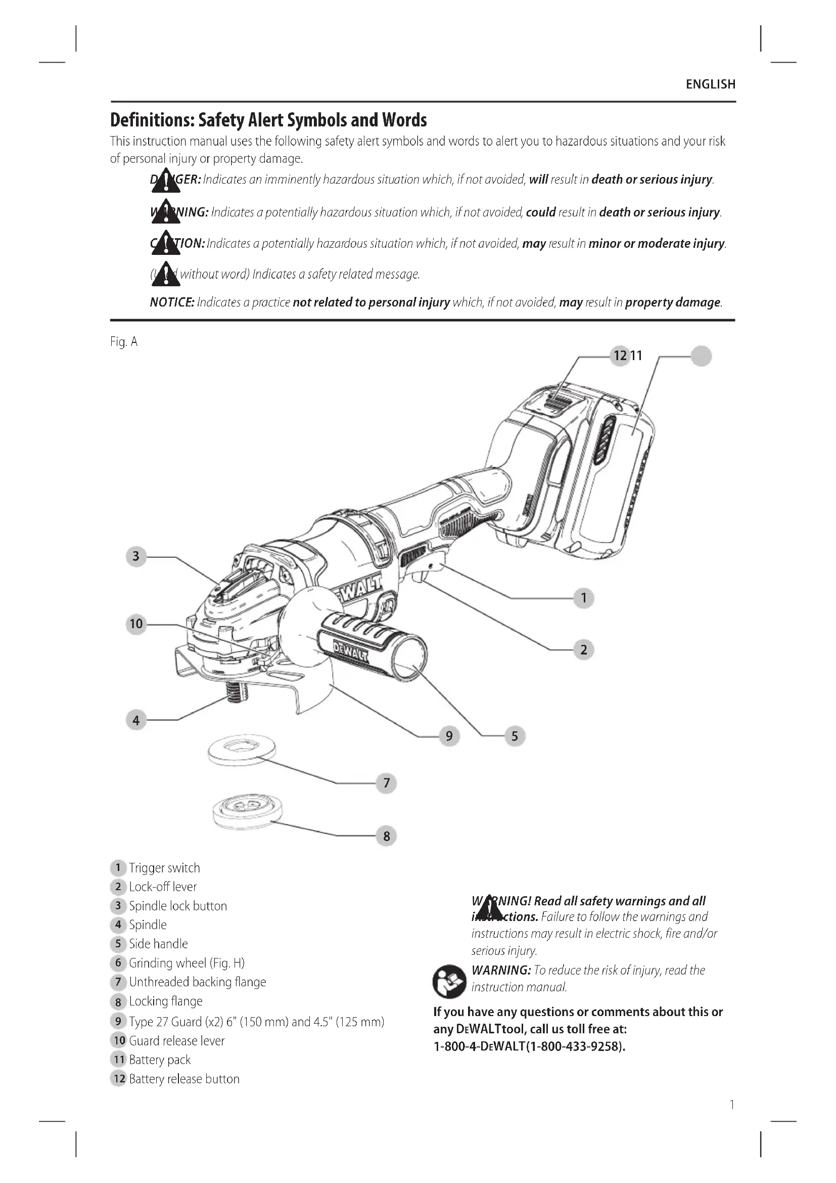 WALT Industrial Tool Co., 701 East Joppa Road, Towson, MD 21286 (OCT19) Part No. N770107 DCG418 Copyright © 2019 D