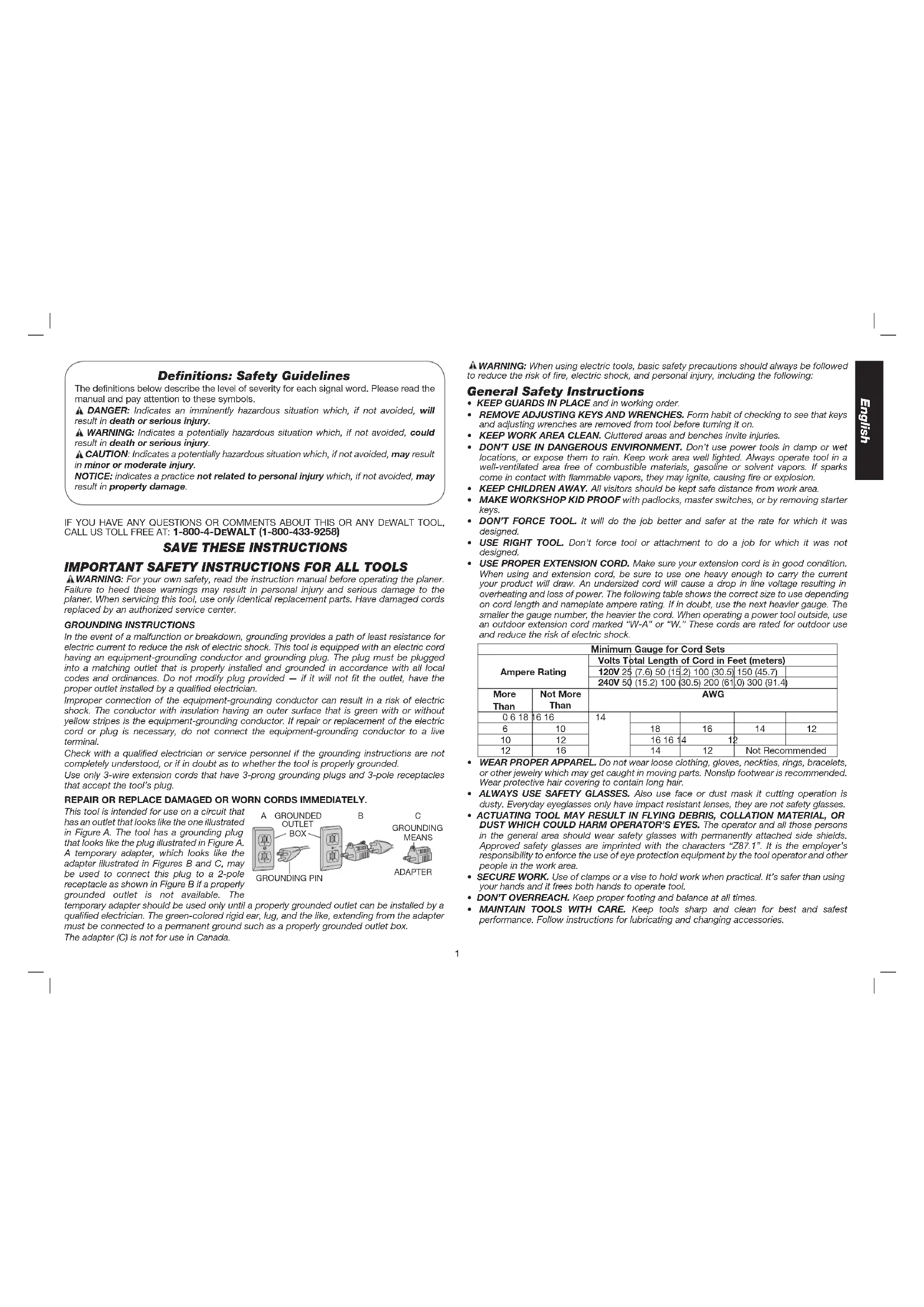 IF YOU HAVE ANY QUESTIONS OR COMMENTS ABOUT THIS OR ANY DEWALT TOOL, CALL US TOLL FREE AT: 1-800-4-DeWALT (1-800-433-9258)