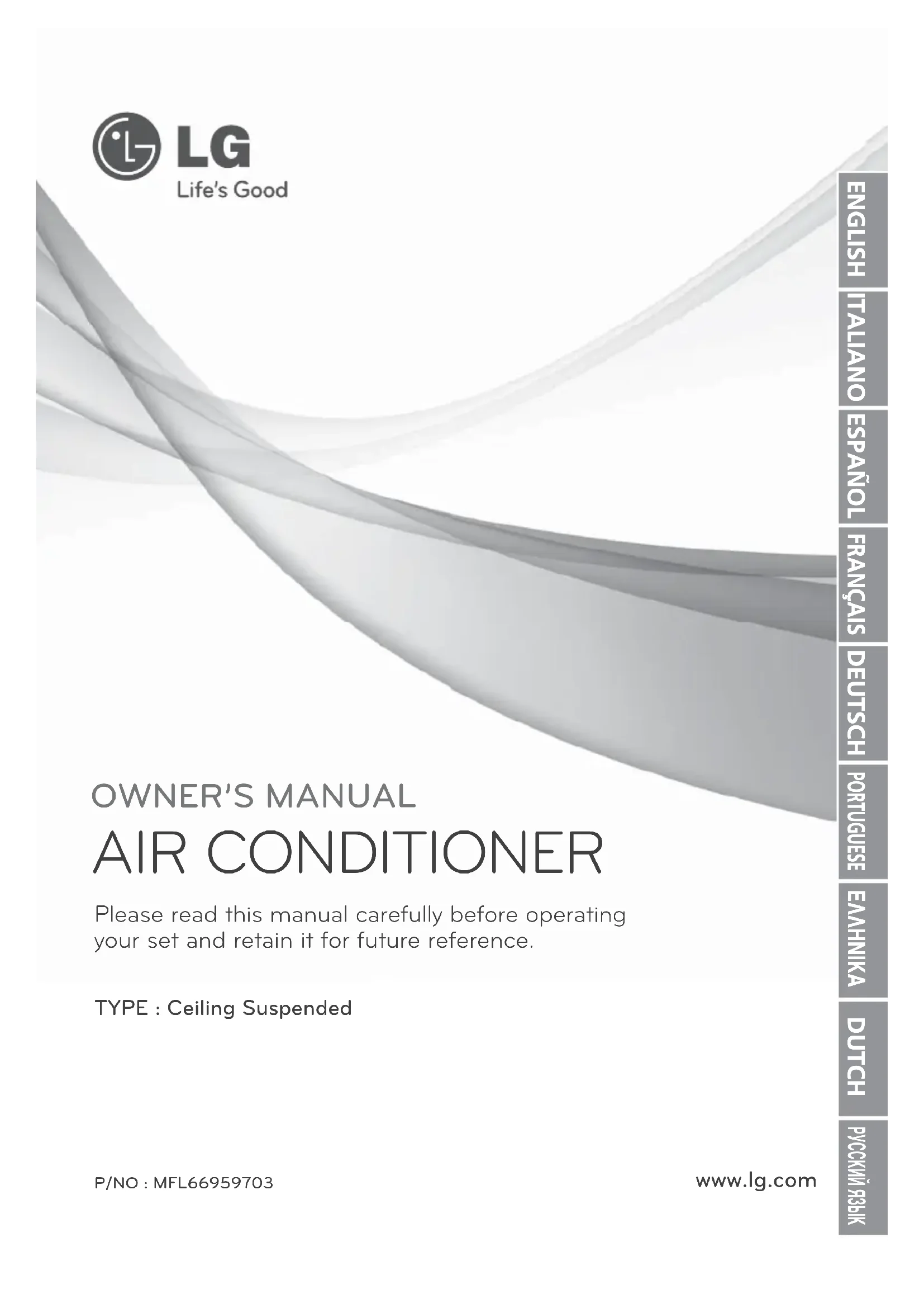 AIR CONDITIONER Please read this manual carefully before operating your set and retain it for future reference. TYPE : Ceiling Suspended ENGLISH ITALIANO ESPAÑOL FRANÇAIS DEUTSCH PORTUGUESE