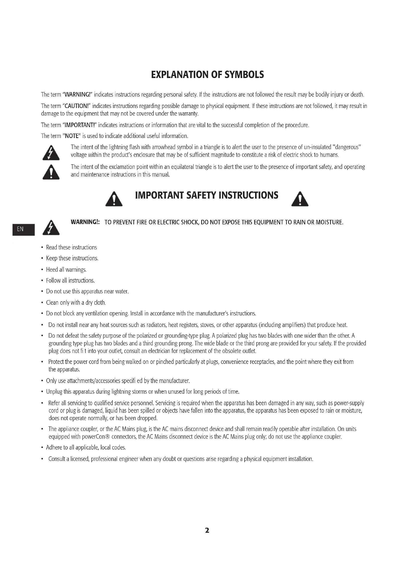 The term “WARNING!” indicates instructions regarding personal safety. If the instructions are not followed the result may be bodily injury or death. The term “CAUTION!” indicates instructions regarding possible damage to physical equipment. If these instructions are not followed, it may result in damage to the equipment that may not be covered under the warranty. The term “IMPORTANT!” indicates instructions or information that are vital to the successful completion of the procedure. The term "NOTE" is used to indicate additional useful information. The intent of the lightning fl ash with arrowhead symbol in a triangle is to alert the user to the presence of un-insulated "dangerous" voltage within the product's enclosure that may be of suffi cient magnitude to constitute a risk of electric shock to humans. The intent of the exclamation point within an equilateral triangle is to alert the user to the presence of important safety, and operating and maintenance instructions in this manual.