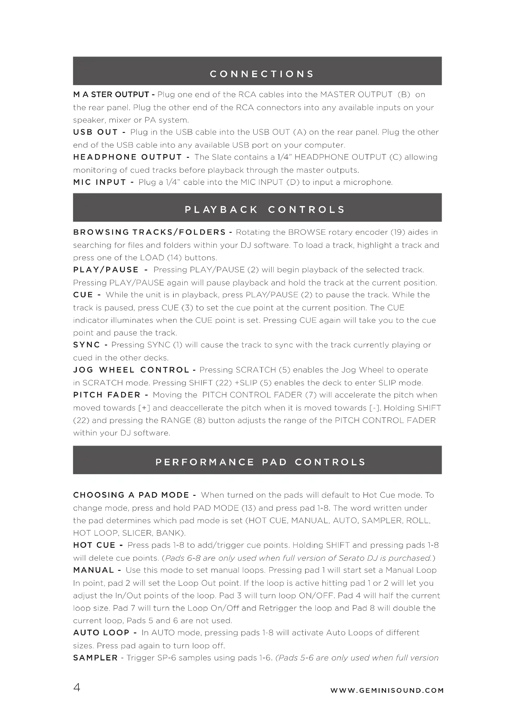 SLATE 4 - DJ Equipment GEMINI - Free user manual and instructions