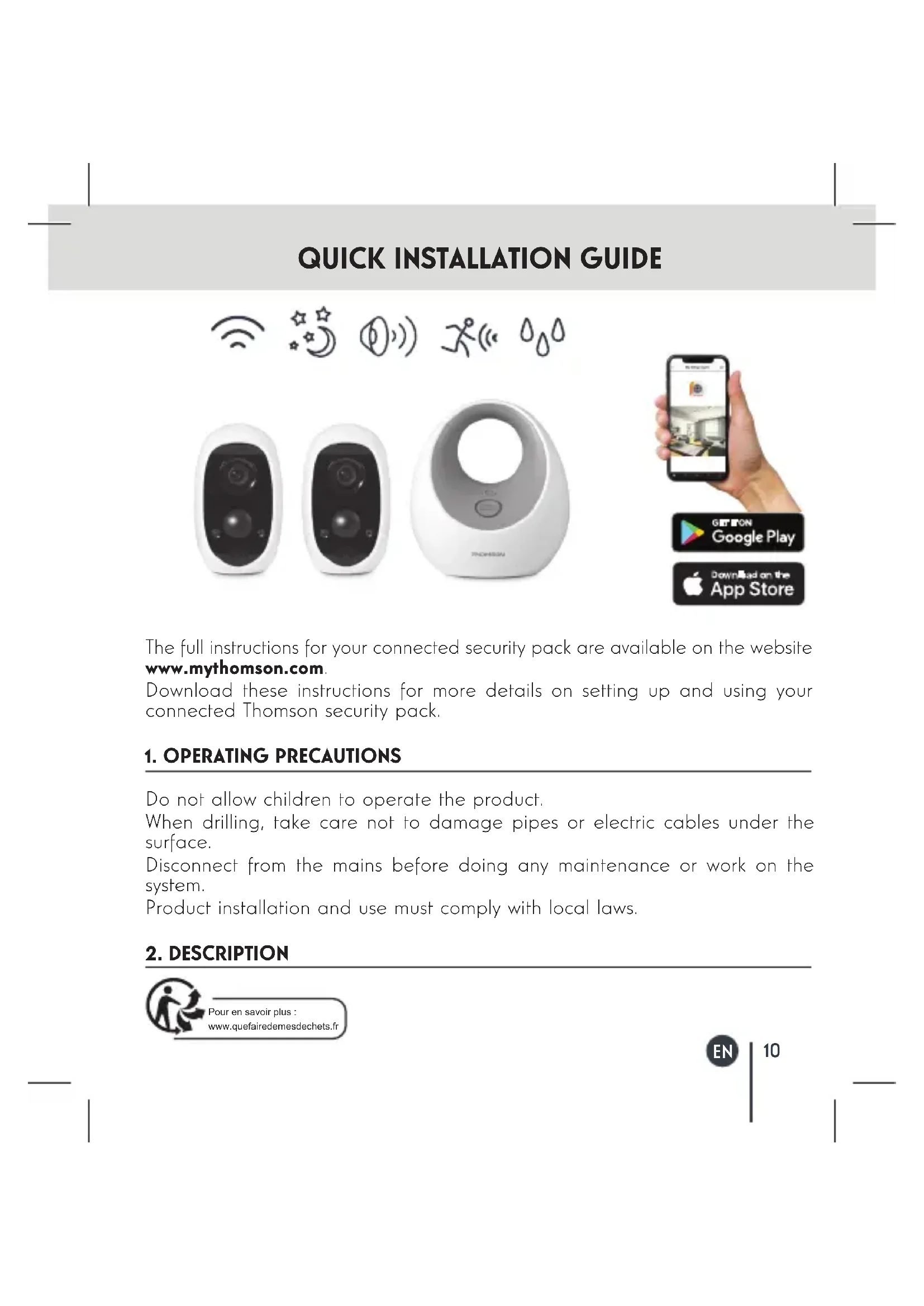 The full instructions for your connected security pack are available on the website www.mythomson.com. Download these instructions for more details on setting up and using your connected Thomson security pack.