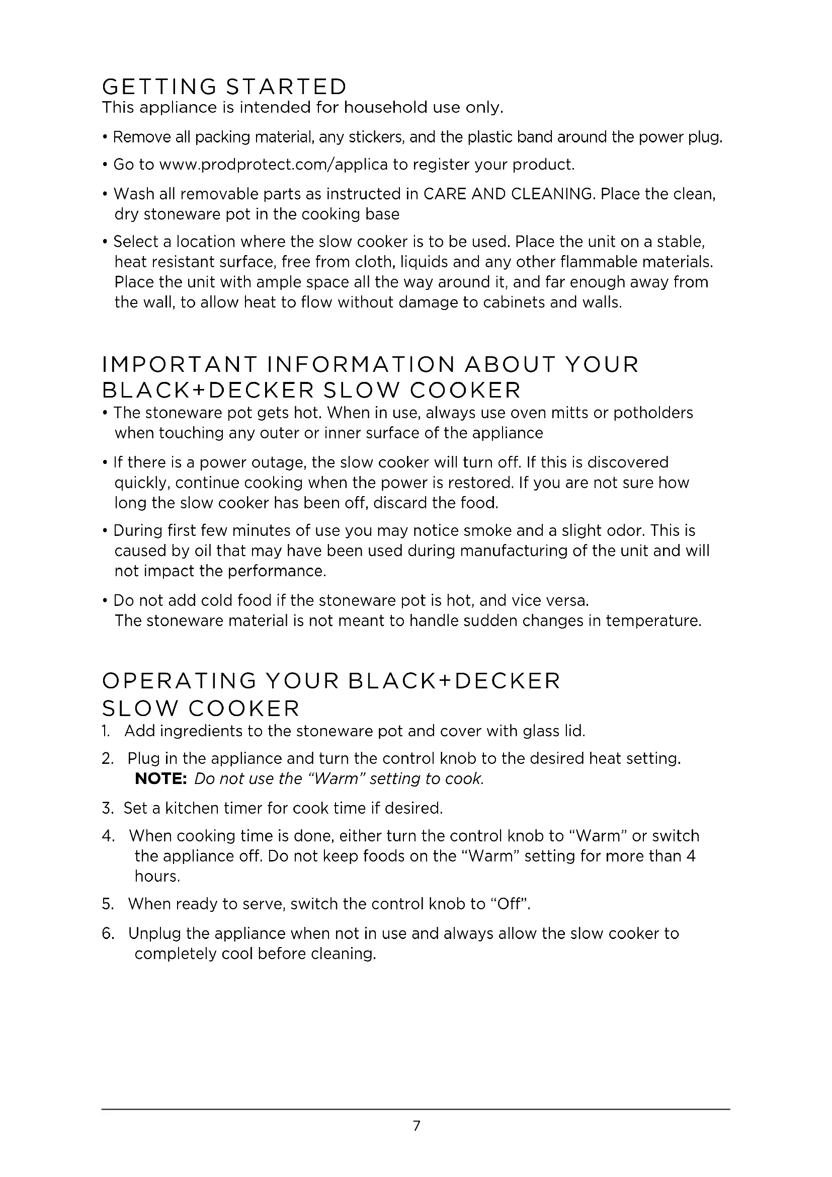 GETTING STARTED This appliance is intended for household use only.