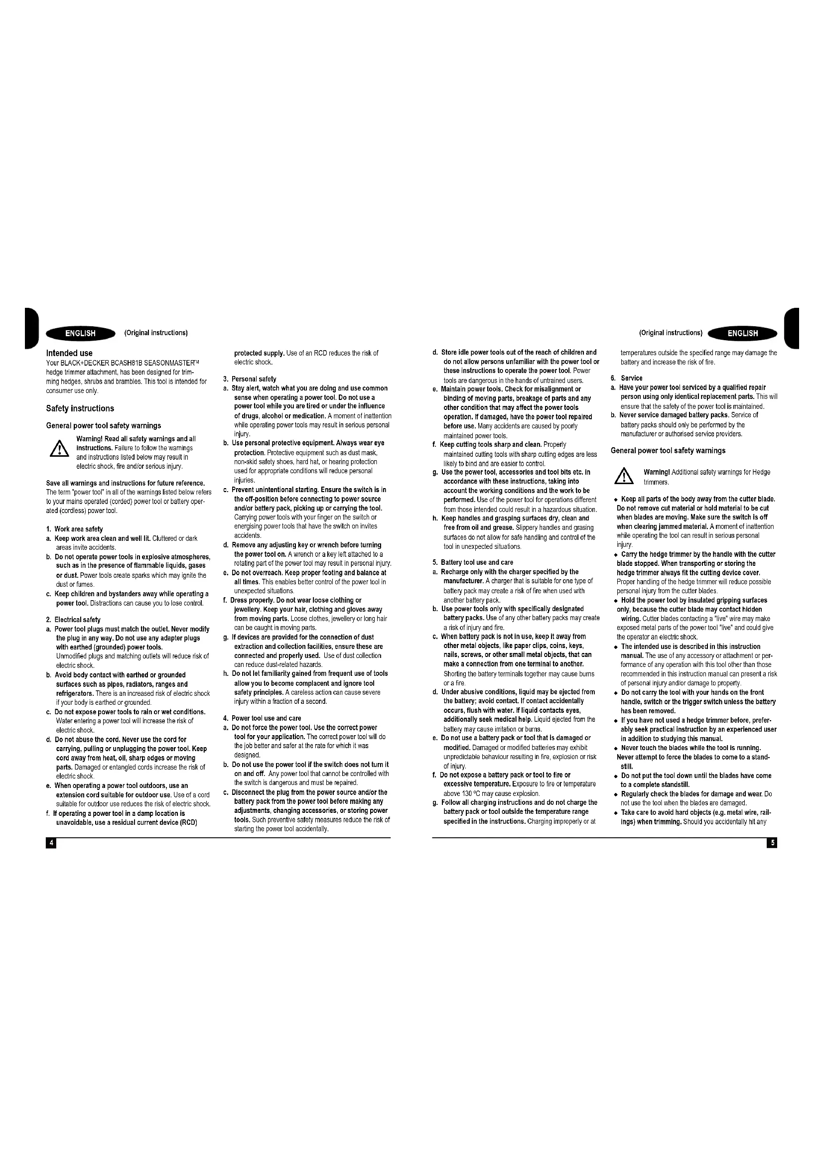hedge trimmer attachment, has been designed for trim- ming hedges, shrubs and brambles. This tool is intended for consumer use only. Safety instructions General power tool safety warnings