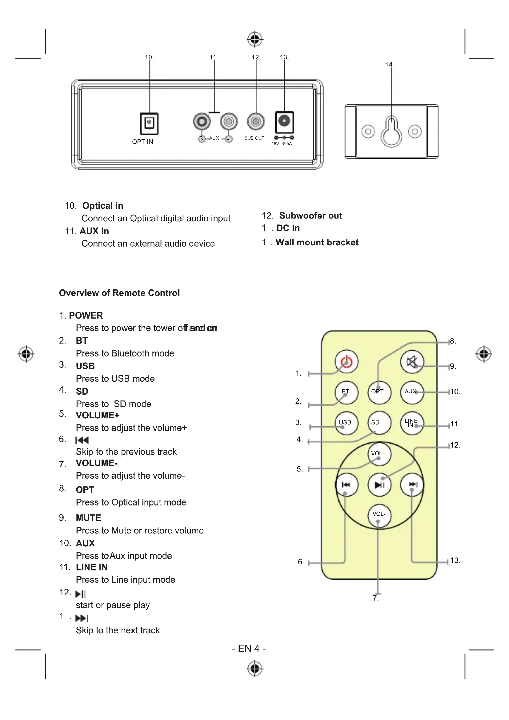 ou can play from an external audio device such as MP3 player through this unit. Optical in Jack (Requires an optical cable)