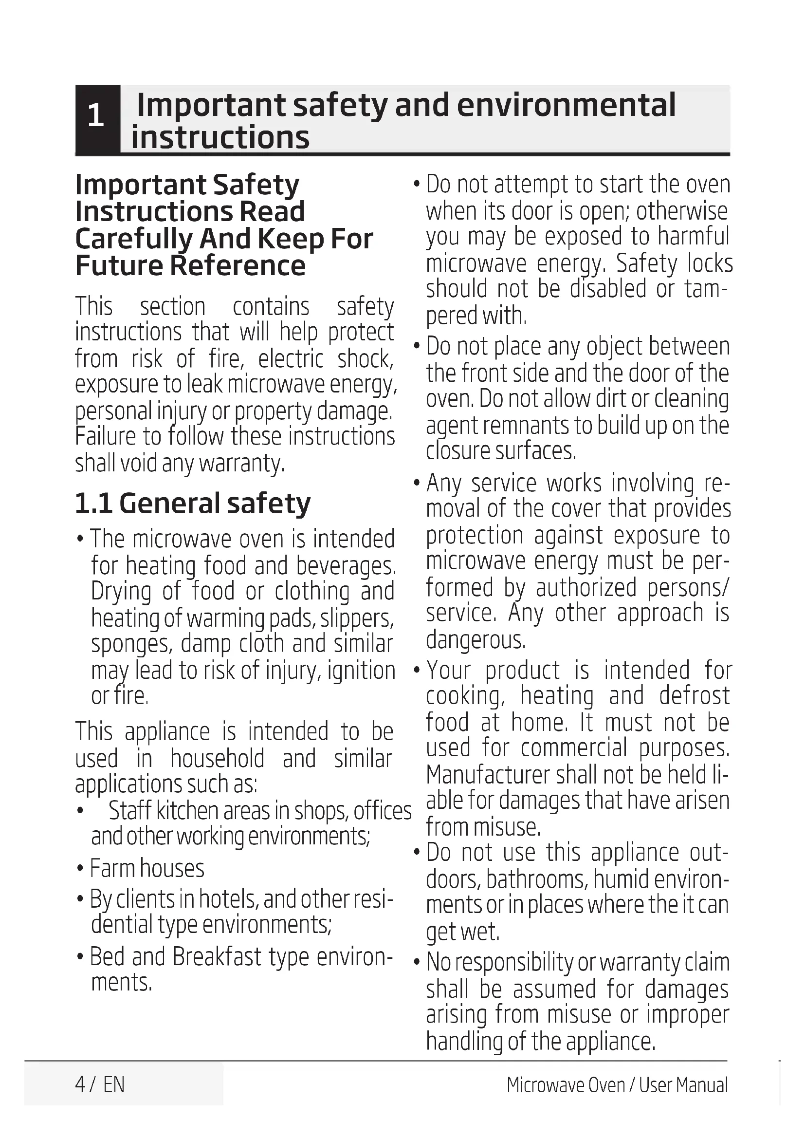 Important safety and environmental instructionsMicrowave Oven / User Manual 10 / EN