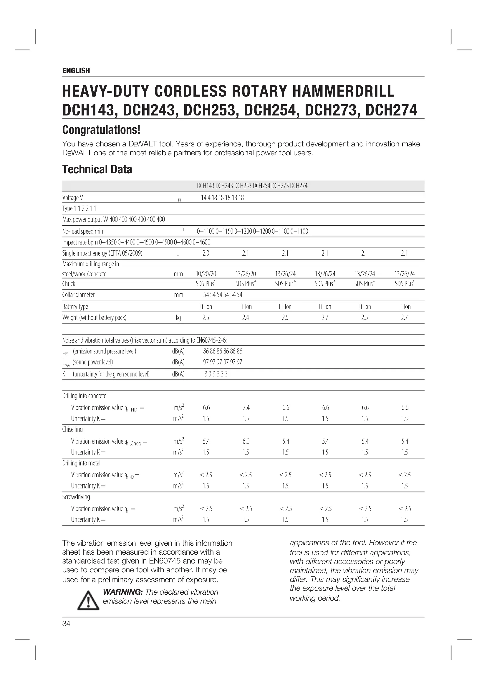 Download the instructions for your Hammer in PDF format for free! Find your manual DCH253 - DEWALT and take your electronic device back in hand. On this page are published all the documents necessary for the use of your device. DCH253 by DEWALT.