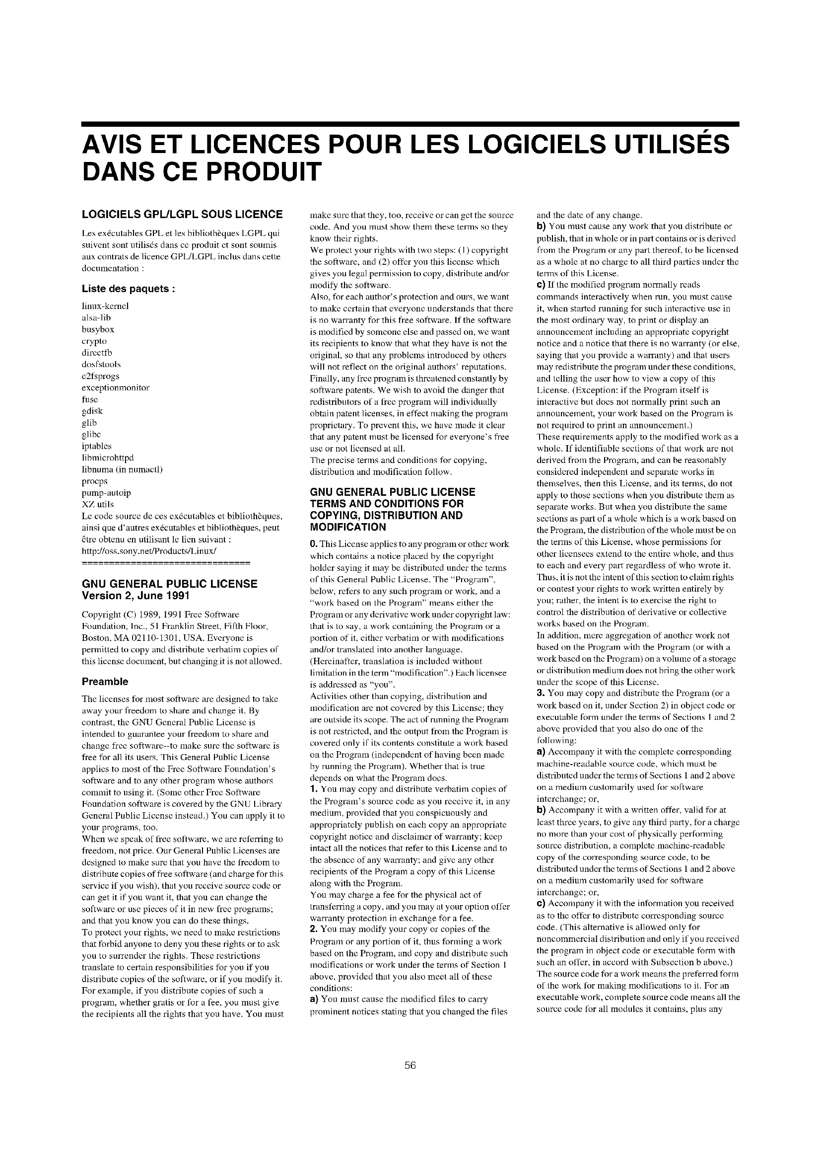 Version 2, June 1991 Copyright (C) 1989, 1991 Free Software Foundation, Inc., 51 Franklin Street, Fifth Floor, Boston, MA 02110-1301, USA. Everyone is permitted to copy and distribute verbatim copies of this license document, but changing it is not allowed. Preamble The licenses for most software are designed to take away your freedom to share and change it. By contrast, the GNU General Public License is intended to guarantee your freedom to share and change free software--to make sure the software is free for all its users. This General Public License applies to most of the Free Software Foundation’s software and to any other program whose authors commit to using it. (Some other Free Software Foundation software is covered by the GNU Library General Public License instead.) You can apply it to your programs, too. When we speak of free software, we are referring to freedom, not price. Our General Public Licenses are designed to make sure that you have the freedom to distribute copies of free software (and charge for this service if you wish), that you receive source code or can get it if you want it, that you can change the software or use pieces of it in new free programs; and that you know you can do these things. To protect your rights, we need to make restrictions that forbid anyone to deny you these rights or to ask you to surrender the rights. These restrictions translate to certain responsibilities for you if you distribute copies of the software, or if you modify it. For example, if you distribute copies of such a program, whether gratis or for a fee, you must give the recipients all the rights that you have. You must make sure that they, too, receive or can get the source code. And you must show them these terms so they know their rights. We protect your rights with two steps: (1) copyright the software, and (2) offer you this license which gives you legal permission to copy, distribute and/or modify the software. Also, for each author’s protection and ours, we want to make certain that everyone understands that there is no warranty for this free software. If the software is modified by someone else and passed on, we want its recipients to know that what they have is not the original, so that any problems introduced by others will not reflect on the original authors’ reputations. Finally, any free program is threatened constantly by software patents. We wish to avoid the danger that redistributors of a free program will individually obtain patent licenses, in effect making the program proprietary. To prevent this, we have made it clear that any patent must be licensed for everyone’s free use or not licensed at all. The precise terms and conditions for copying, distribution and modification follow.