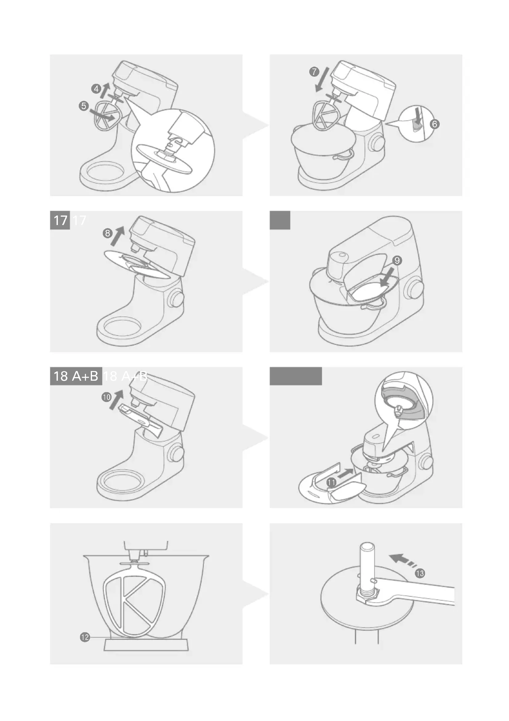 - The splashguard cannot be fitted to the bowl unless the shield is fitted. 1 Clip the head shield upwards onto the underside of the mixer head