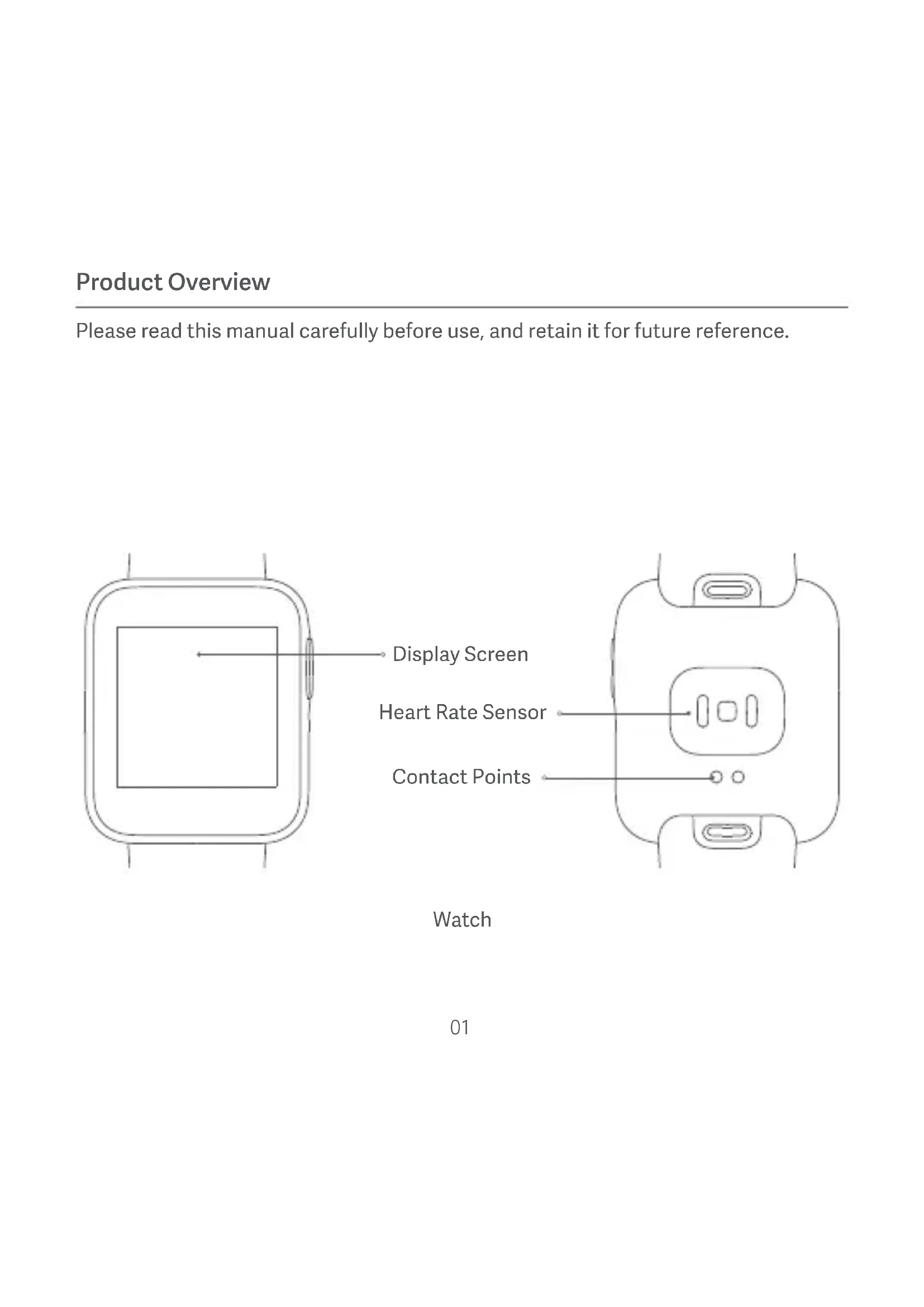Product Overview Please read this manual carefully before use, and retain it for future reference.Function Buon Charging Dock 02How to Wear For daily use, comfortably tighten the watch around your wrist about one-finger width away from your wrist bone. Adjust the strap to ensure the heart rate sensor can collect data normally. Note: Wearing the watch too loosely may impact the data collection by the heart rate sensor. 03How to Connect Download and install Xiaomi Wear/Xiaomi Wear Lite APP to beer manage your watch, and log in to your Mi account for more services. Note: The version of the APP might have been updated, please follow the instructions based on the current APP version.