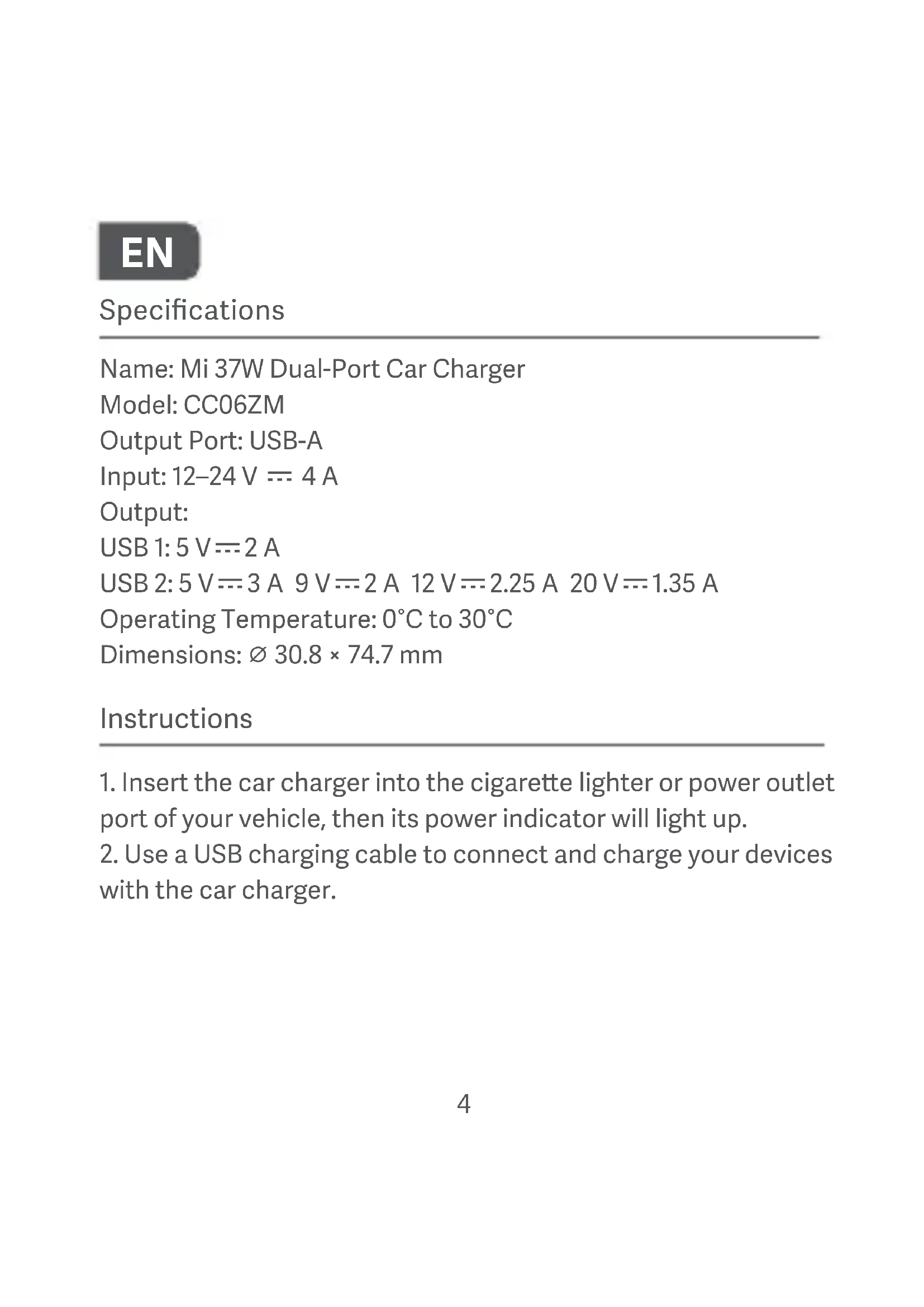 Find the device manual for free Mi 37W DualPort Car Charger Xiaomi in PDF.