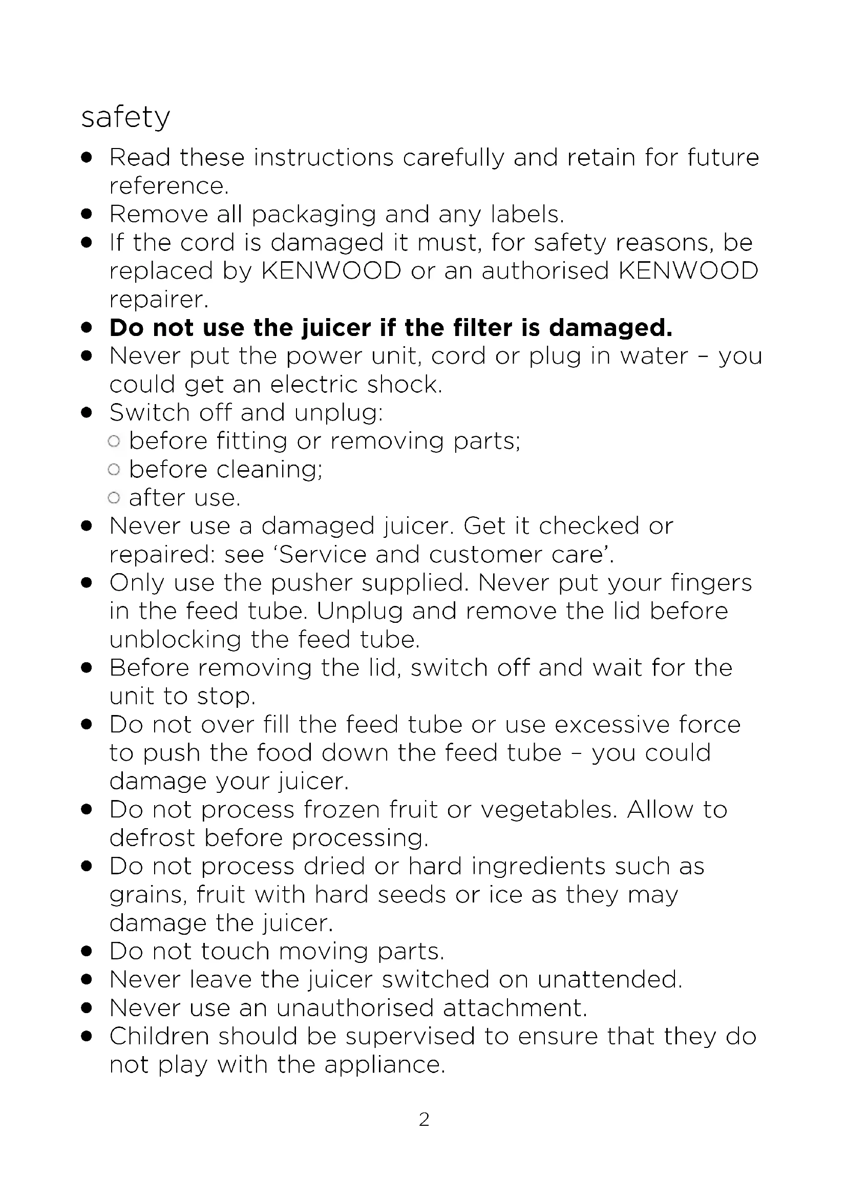 If the cord is damaged it must, for safety reasons, be replaced by KENWOOD or an authorised KENWOOD repairer.