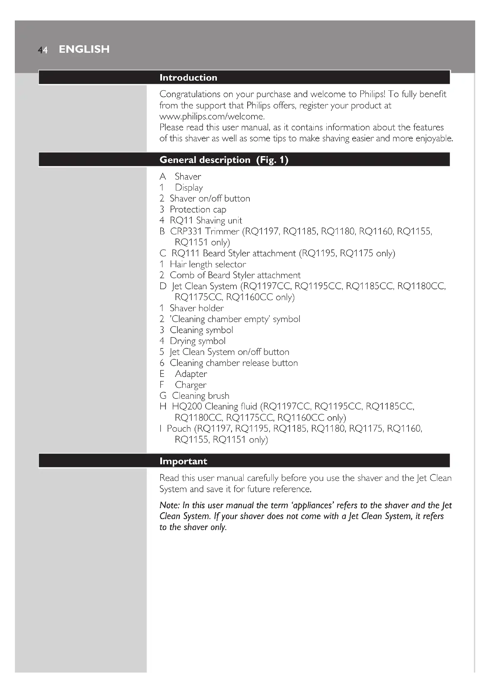 Senso Touch 2D RQ1168 - Shaver PHILIPS - Free user manual and instructions