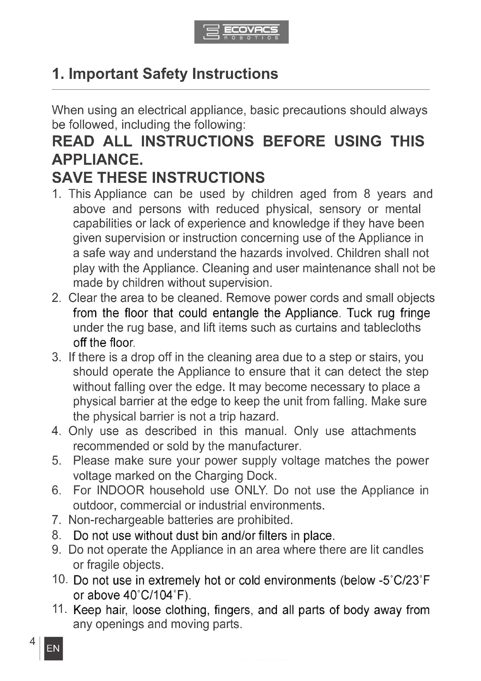 Instruction Manual. ECOVACS ROBOTICS cannot be held liable or responsible for any damages or injuries caused by improper use.