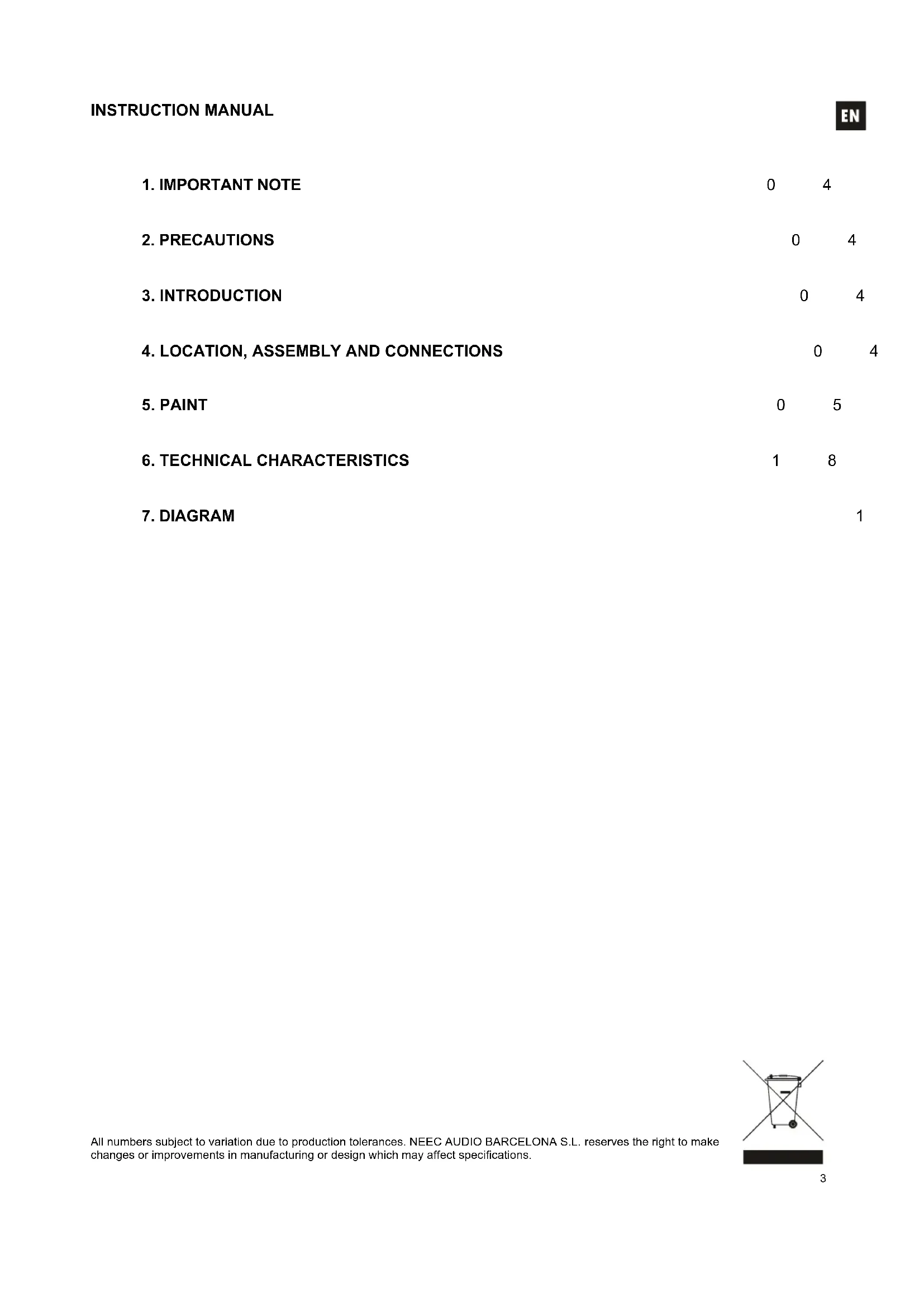 All numbers subject to variation due to production tolerances. NEEC AUDIO BARCELONA S.L. reserves the right to make changes or improvements in manufacturing or design which may affect specifications.4