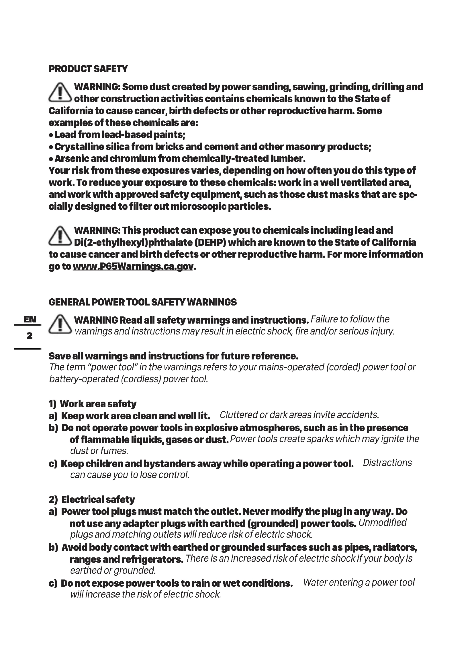 GENERAL POWER TOOL SAFETY WARNINGS