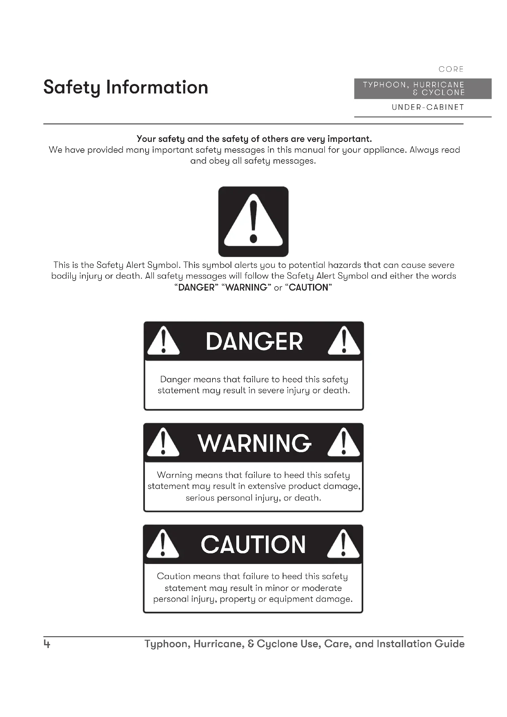 Based on “Kitchen Firesafety Tips” published by NFPA. WARNING7 Typhoon, Hurricane, & Cyclone Use, Care, and Installation Guide ZEPHYRONLINE.COM Safety Information