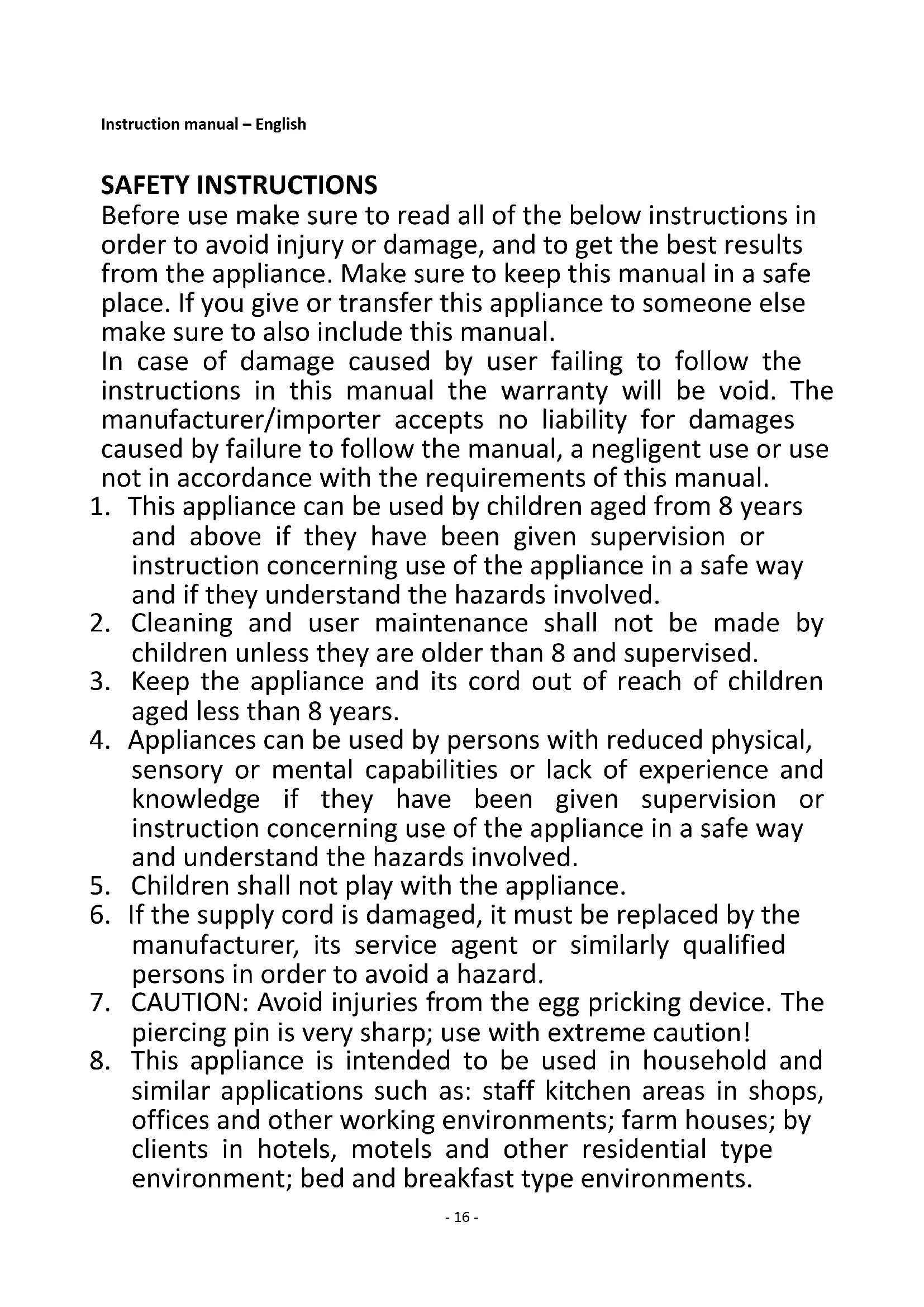 8. This appliance is intended to be used in household and