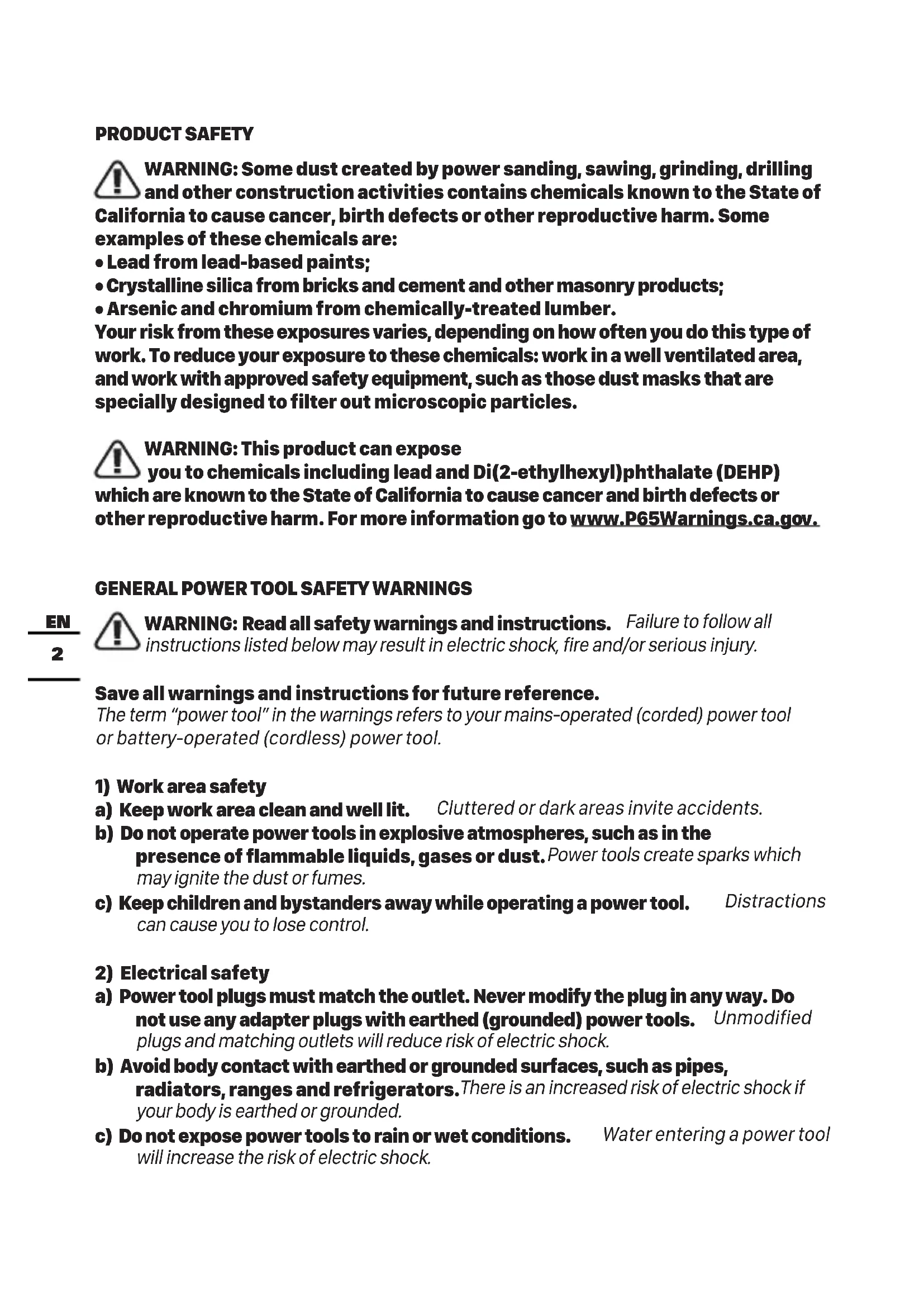 GENERAL POWER TOOL SAFETY WARNINGS