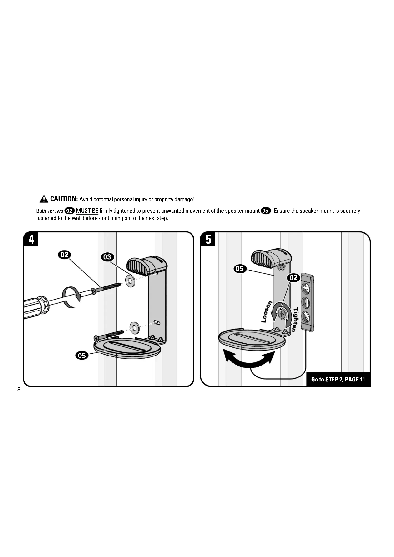 Ensure the speaker mount is securely fastened to the wall before continuing on to the next step.