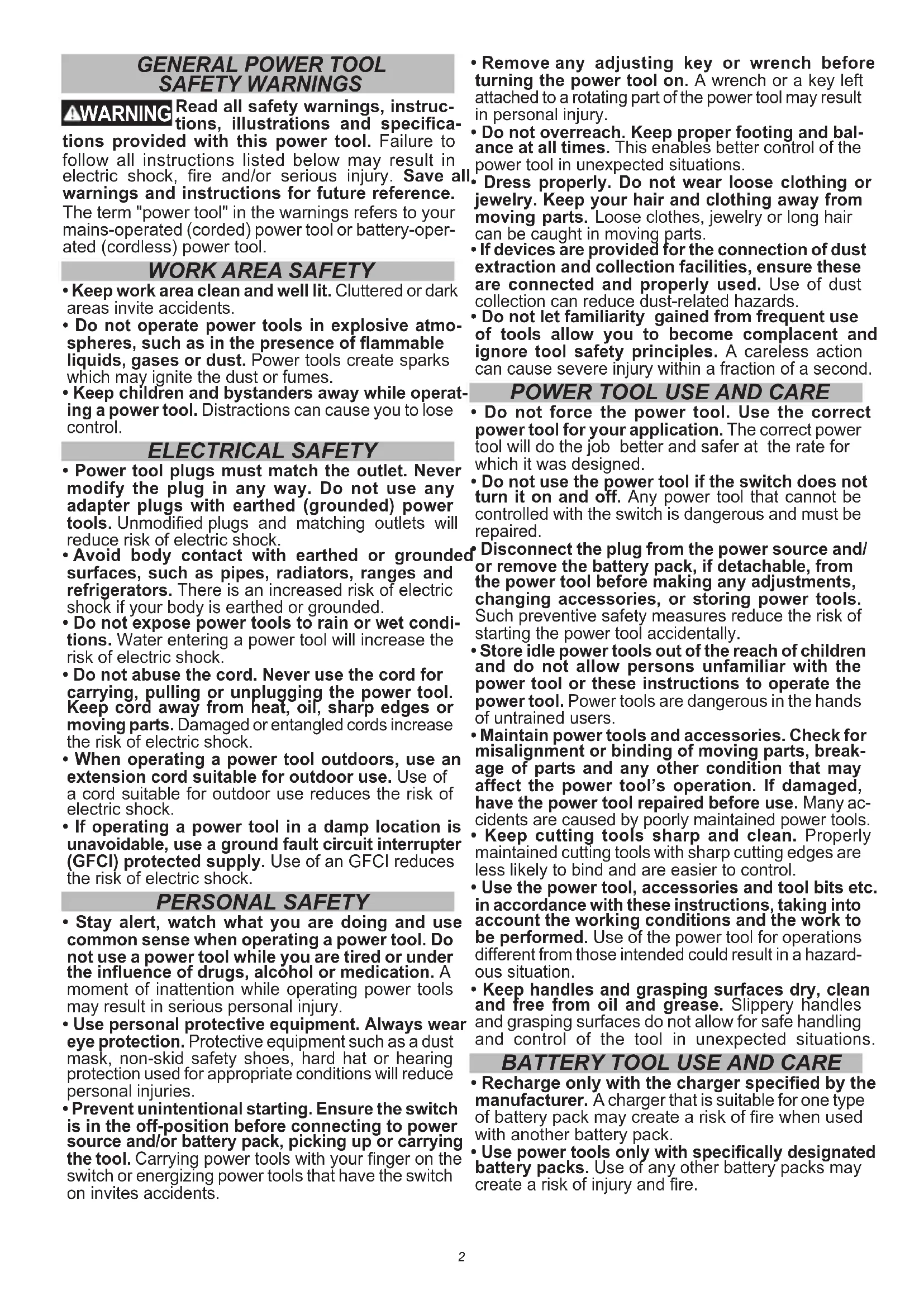 - Do not force the power tool. Use the correct power tool for your application. The correct power tool will do the job better and safer at the rate for which it was designed.
