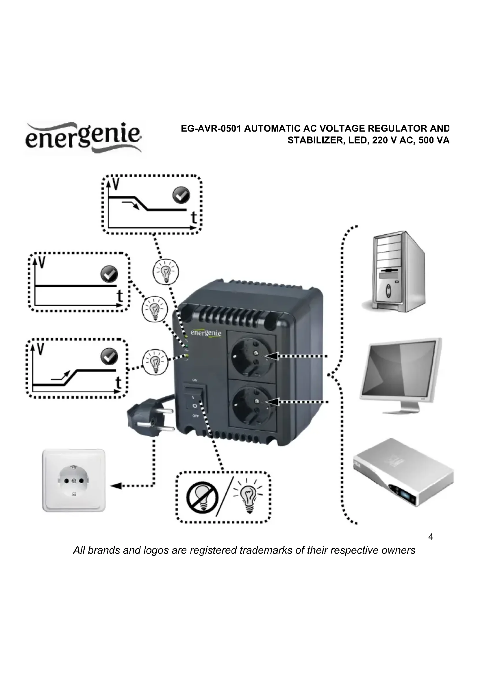 Download the instructions for your Voltage regulator in PDF format for free! Find your manual EGAVR0501 - EnerGenie and take your electronic device back in hand. On this page are published all the documents necessary for the use of your device. EGAVR0501 by EnerGenie.