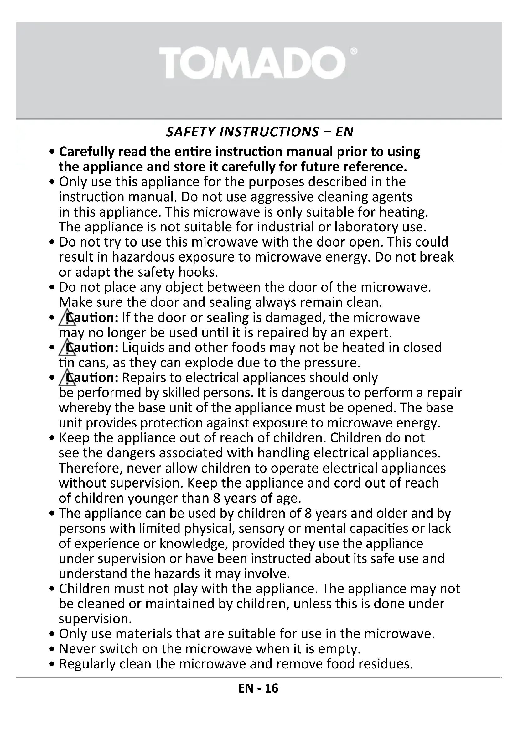 TMC2501S - Microwave Oven Tomado - Free user manual and instructions