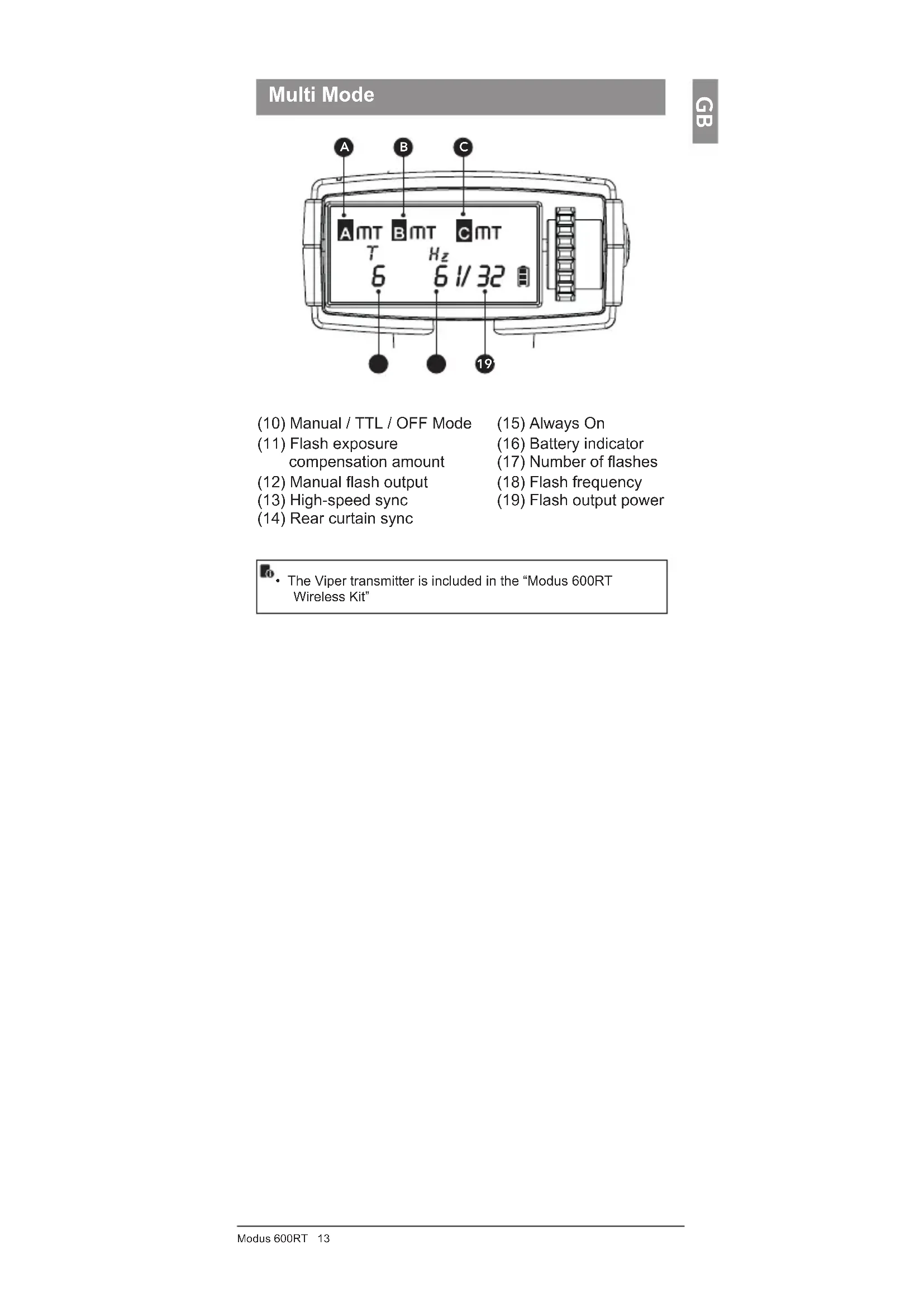 - The Viper transmitter is included in the “Modus 600RT Wireless Kit”GB 14 Modus 600RT Getting Started