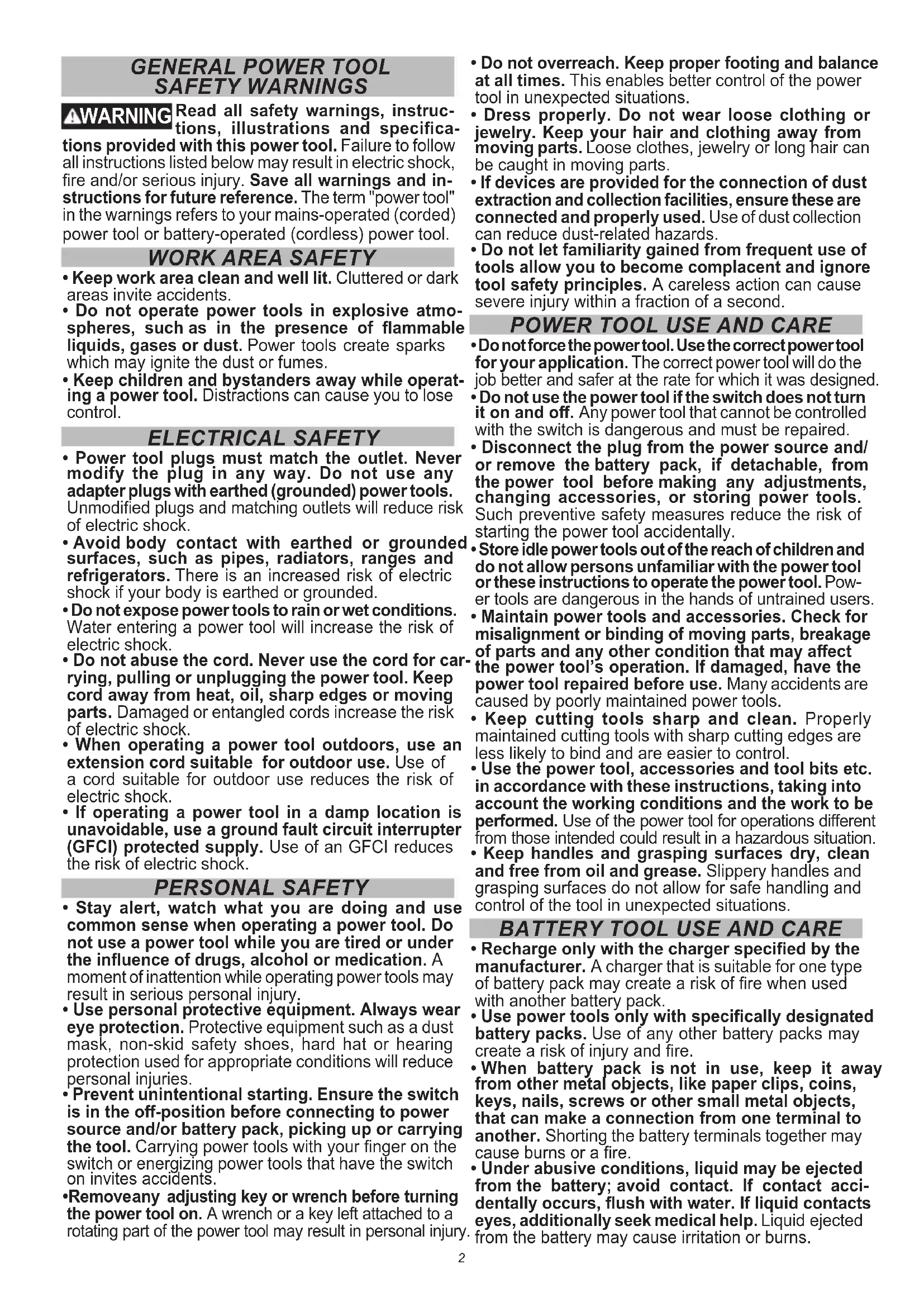 BATTERY TOOL USE AND CARE