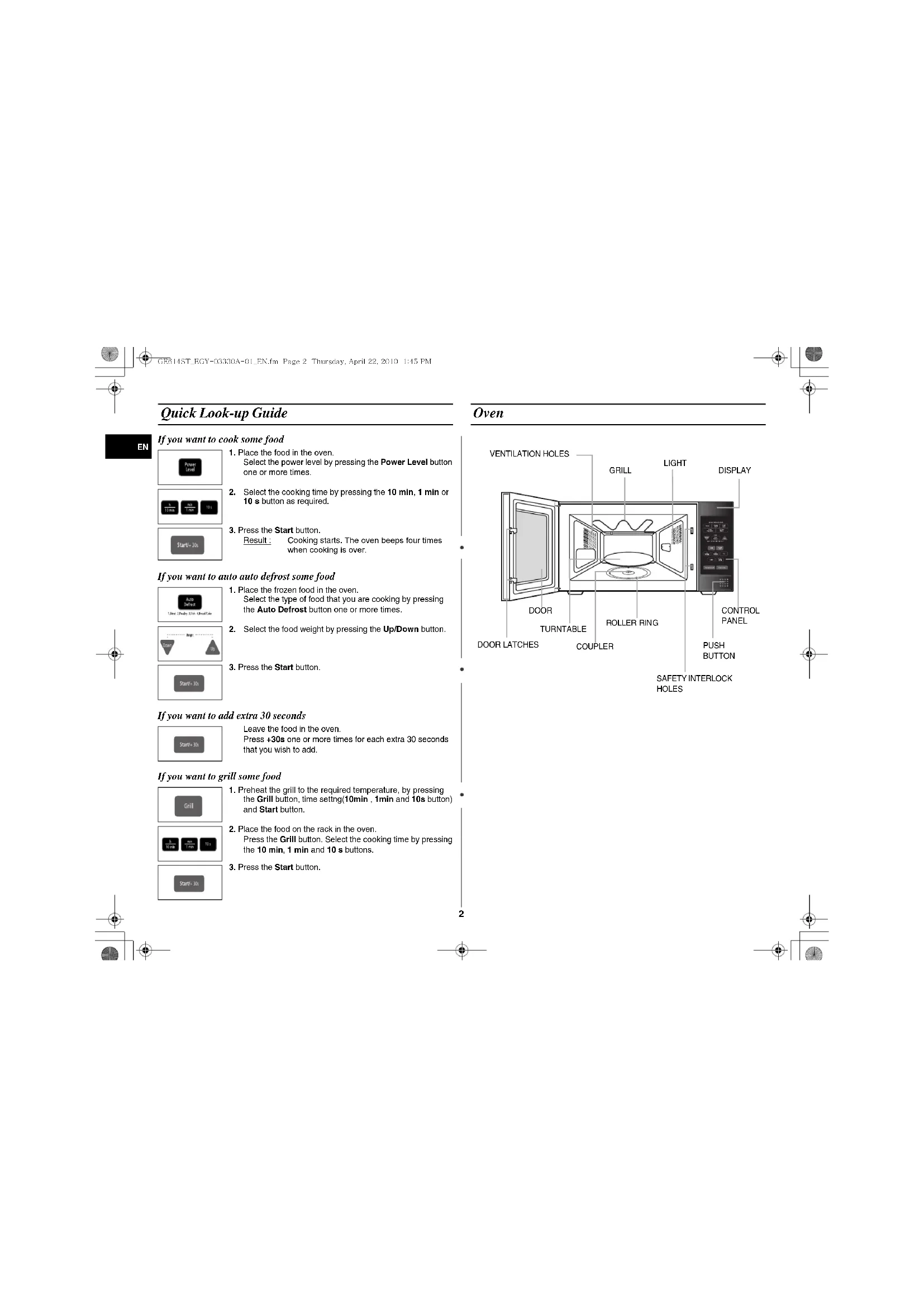 Quick Look-up Guide If you want to cook some food If you want to auto auto defrost some food If you want to add extra 30 seconds If you want to grill some food Oven