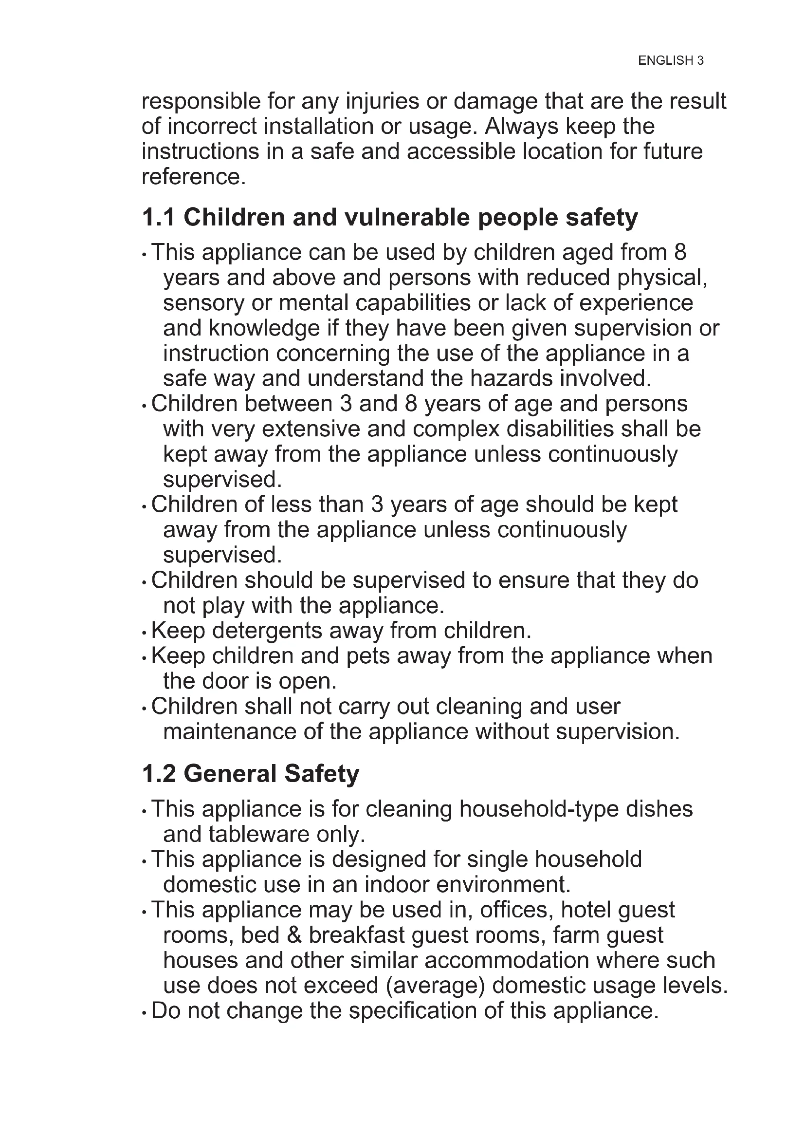 - Children between 3 and 8 years of age and persons with very extensive and complex disabilities shall be kept away from the appliance unless continuously supervised.