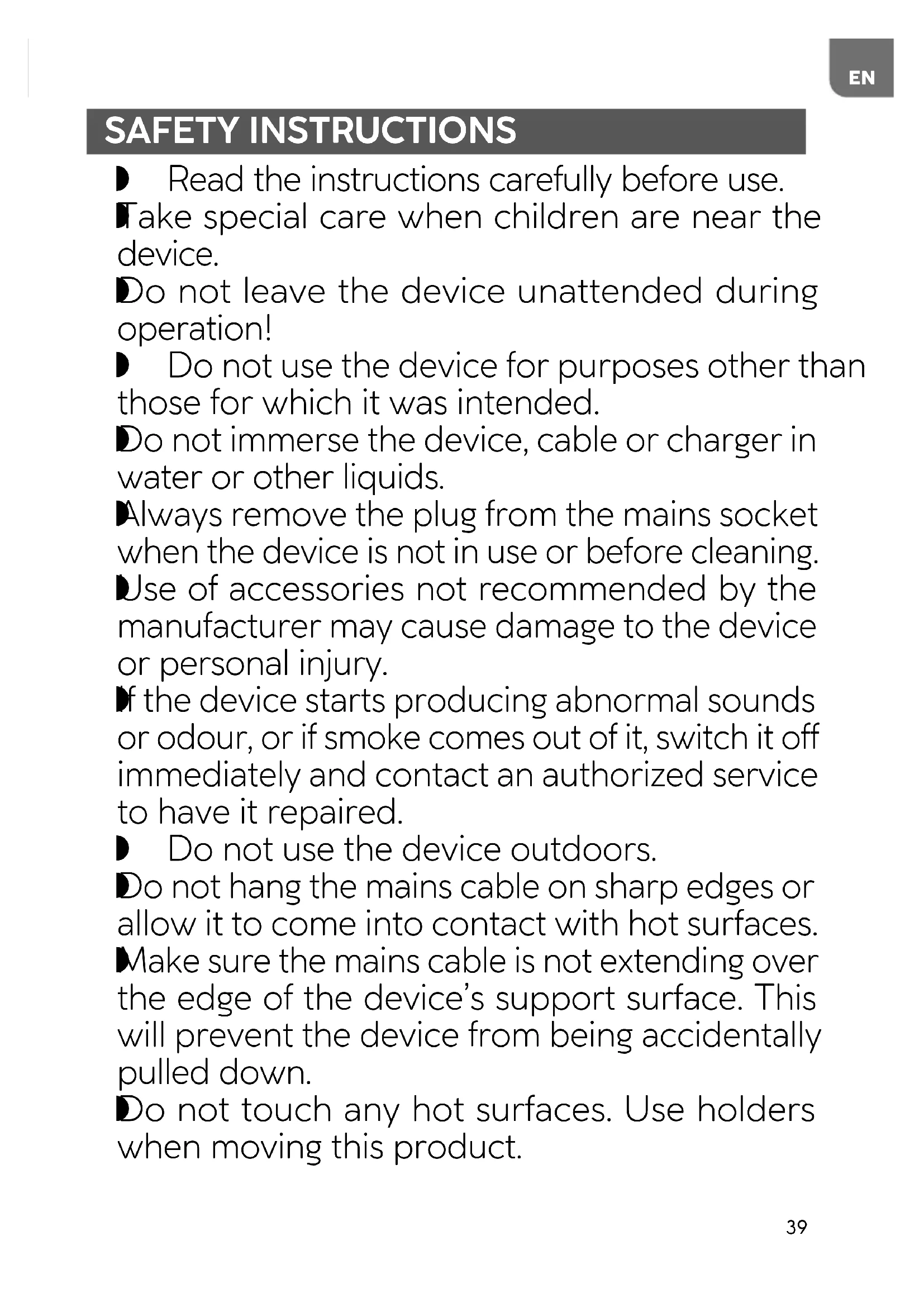 Always remove the plug from the mains socket when the device is not in use or before cleaning.