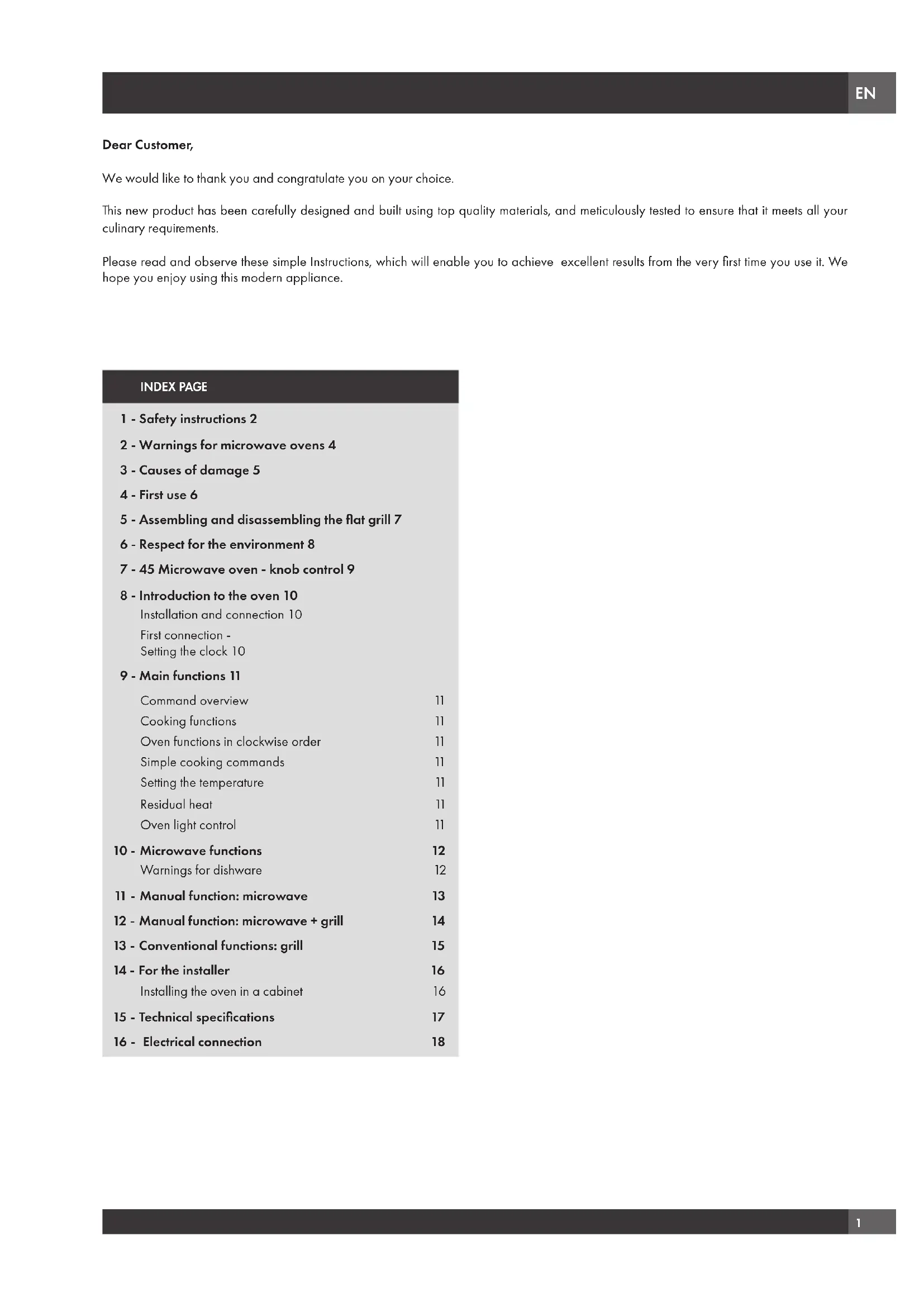 Dear Customer, We would like to thank you and congratulate you on your choice. This new product has been carefully designed and built using top quality materials, and meticulously tested to ensure that it meets all your culinary requirements. Please read and observe these simple Instructions, which will enable you to achieve excellent results from the very first time you use it. We hope you enjoy using this modern appliance.EN