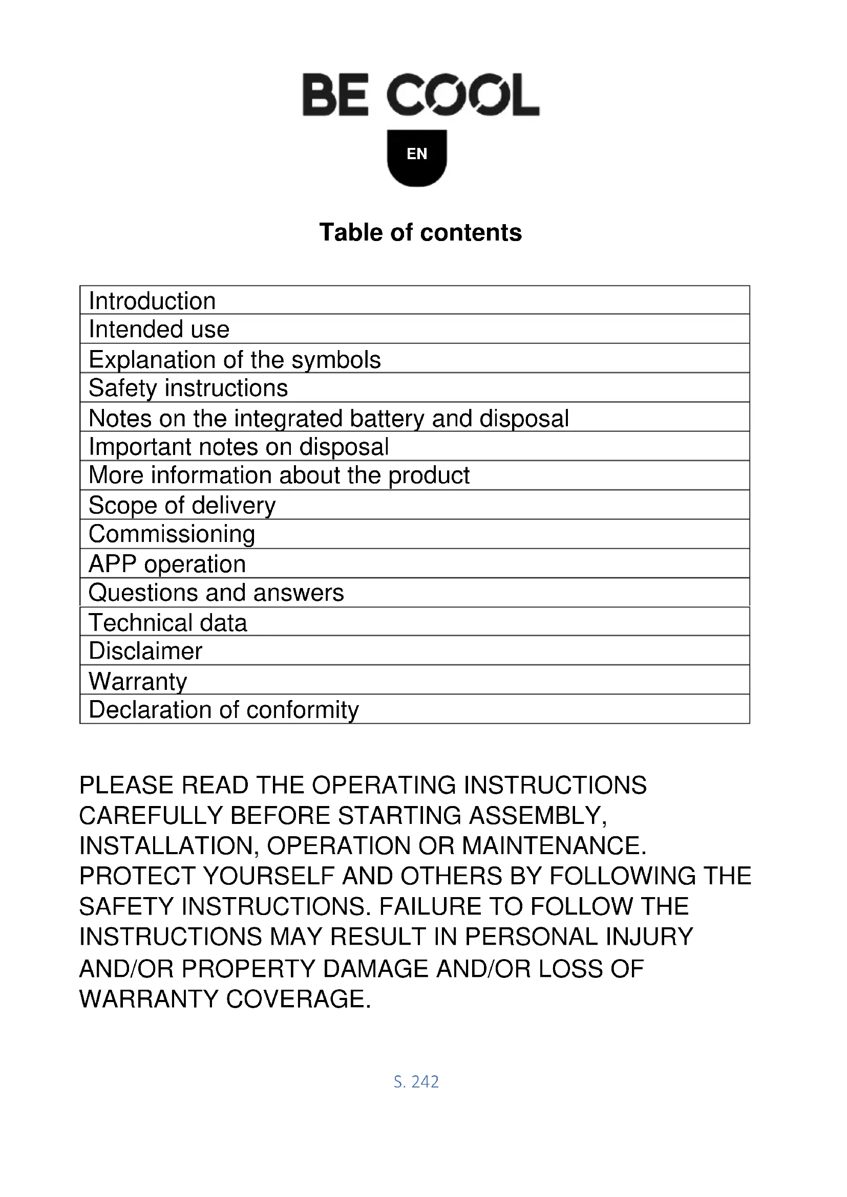 Congratulations on your choice. We hope you enjoy your BE COOL appliance!