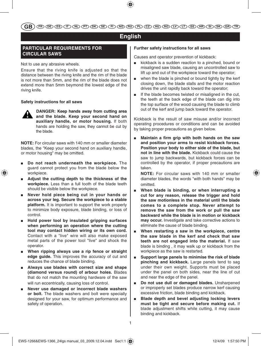 PARTICULAR REQUIREMENTS FOR CIRCULAR SAWS