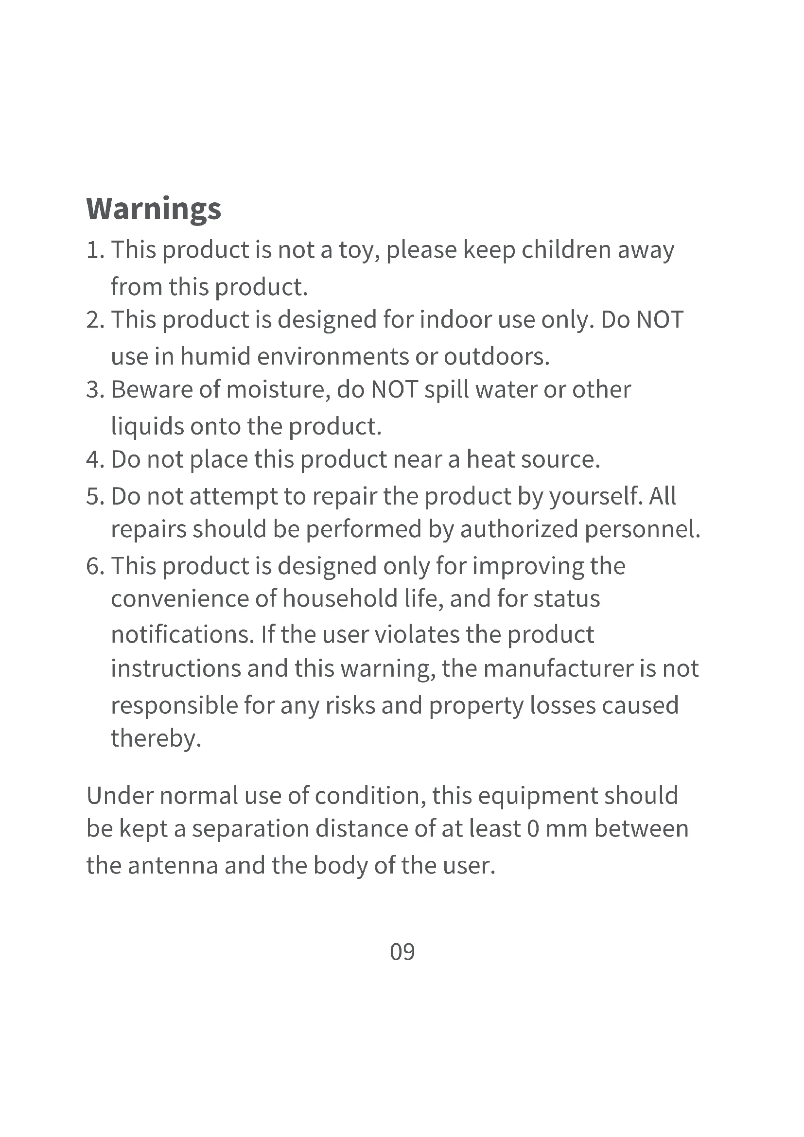 2. This product is designed for indoor use only. Do NOT