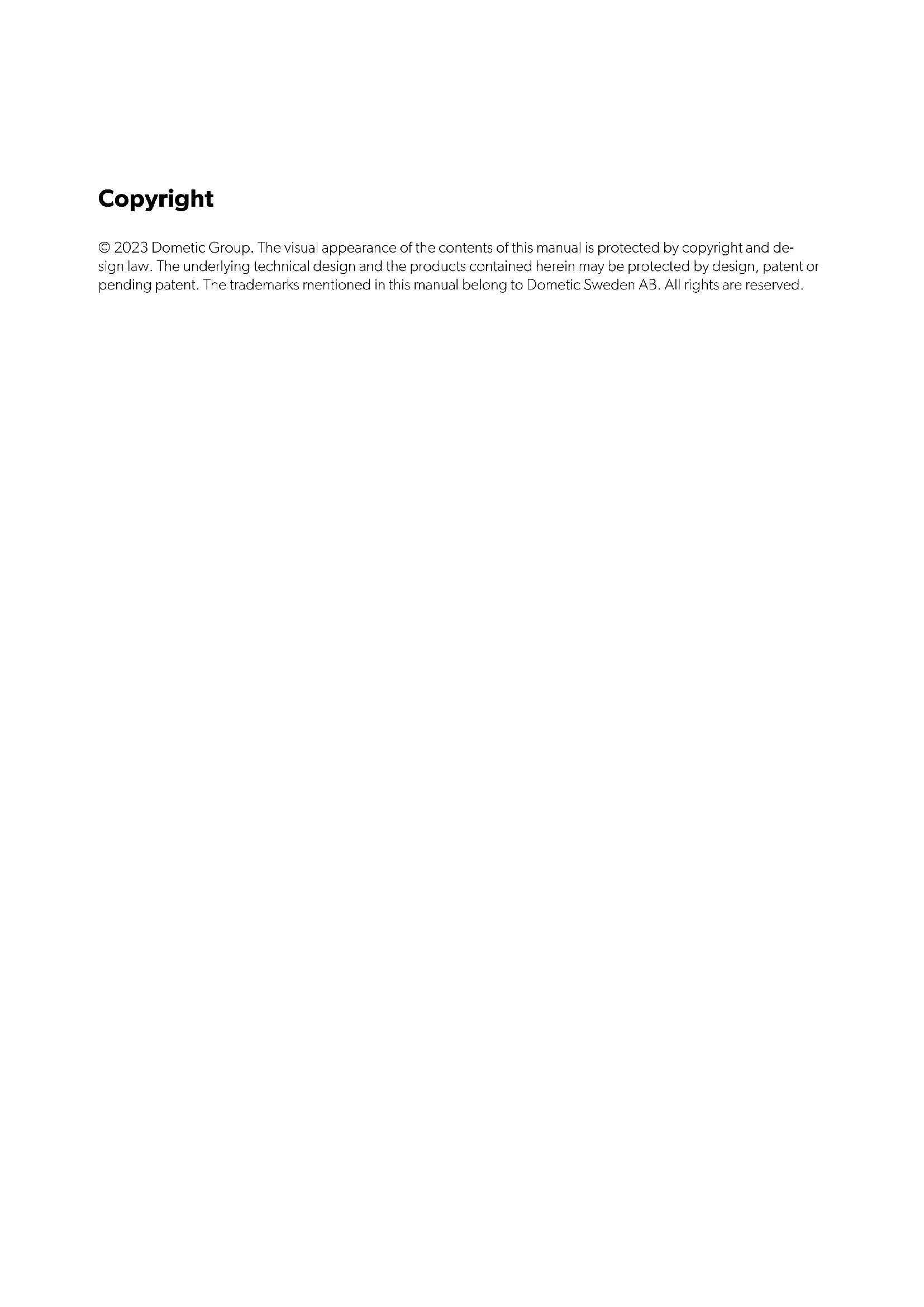 ﻲﺑﻠﺳﻟﺍﺩﺭﺑﻣﻟﺍ 76.......................................................................................ﻝﻳﻐﺷﺗﻟﺍﻝﻳﻟﺩCopyright © 2023 Dometic Group. The visual appearance of the contents of this manual is protected by copyright and de- sign law. The underlying technical design and the products contained herein may be protected by design, patent or pending patent. The trademarks mentioned in this manual belong to Dometic Sweden AB. All rights are reserved.Dometic PSC9, PSC19, PSC22BPEN English