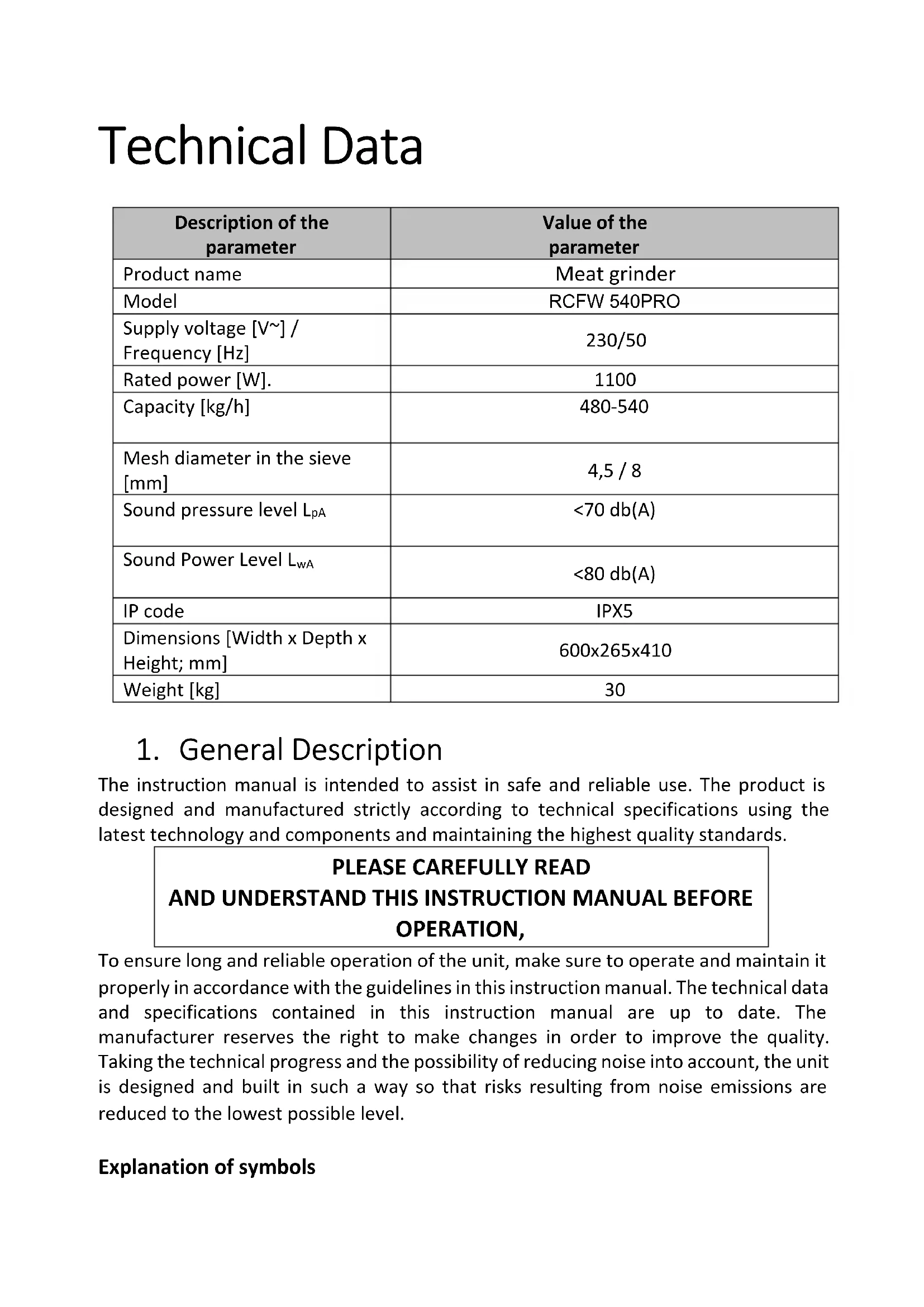 Download the instructions for your Mincer in PDF format for free! Find your manual RCFW 540PRO - Royal Catering and take your electronic device back in hand. On this page are published all the documents necessary for the use of your device. RCFW 540PRO by Royal Catering.